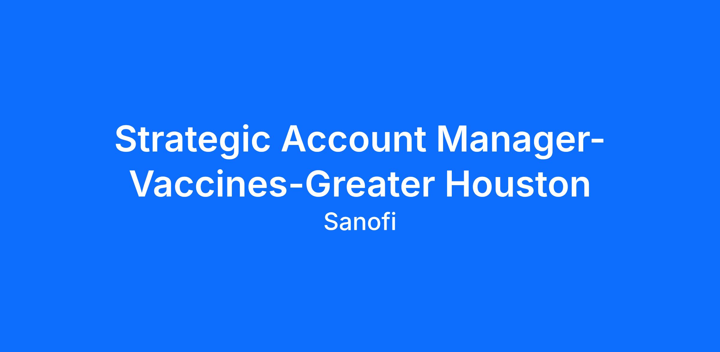 Job Title: Strategic Account Manager- Vaccines