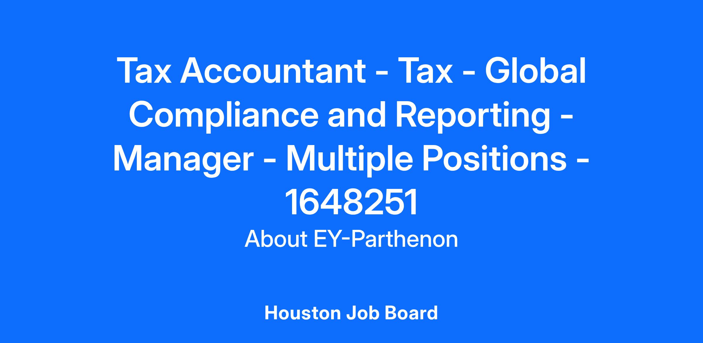Tax Accountant, Tax, Global Compliance & Reporting (Manager) (Multiple Positions) (1648251), Ernst & Young U.S. LLP, Houston, TX.