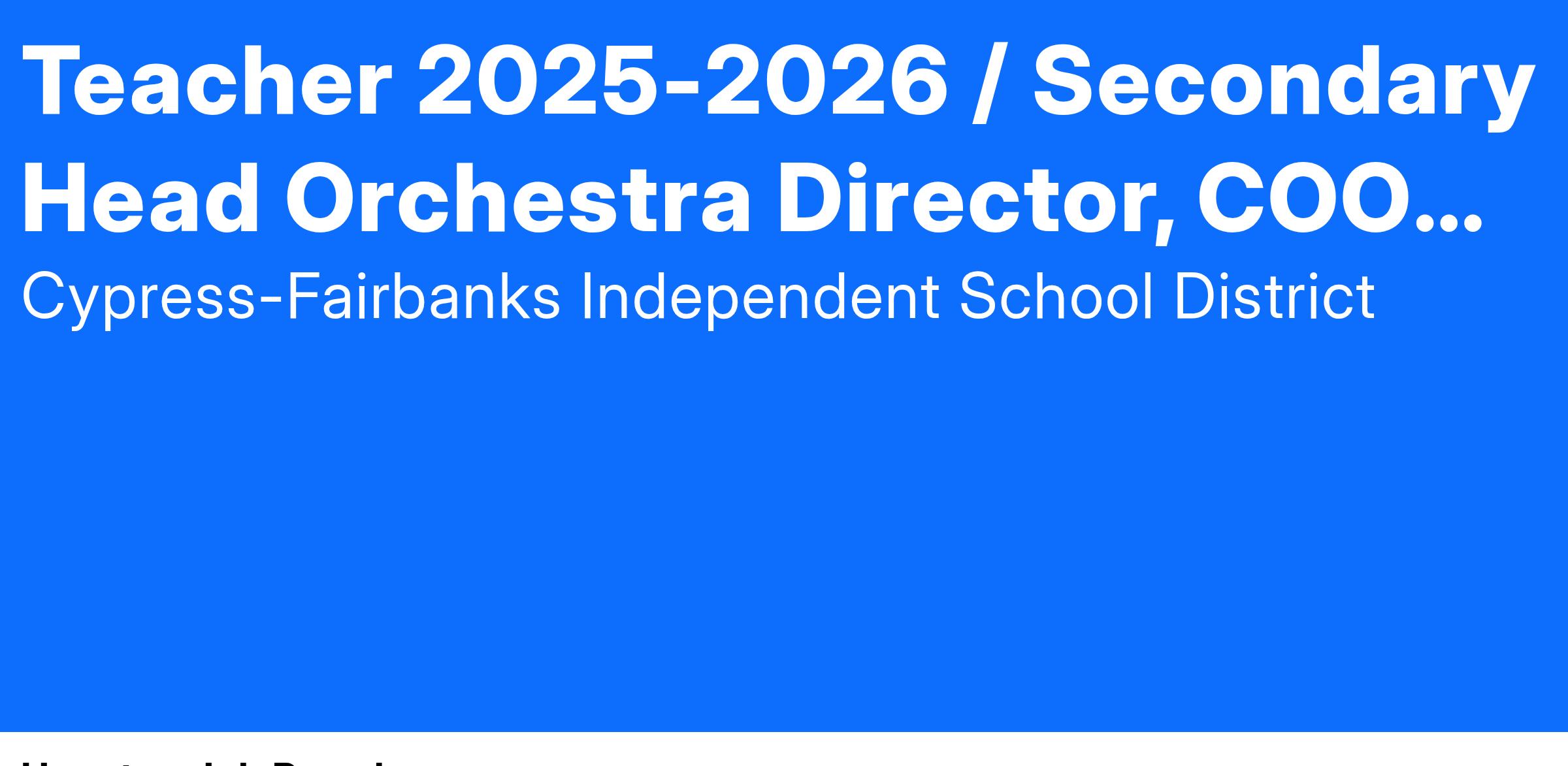 - For Head Director applicants, demonstrates ability to grow and maintain a large, successful orchestra program in a public school setting.