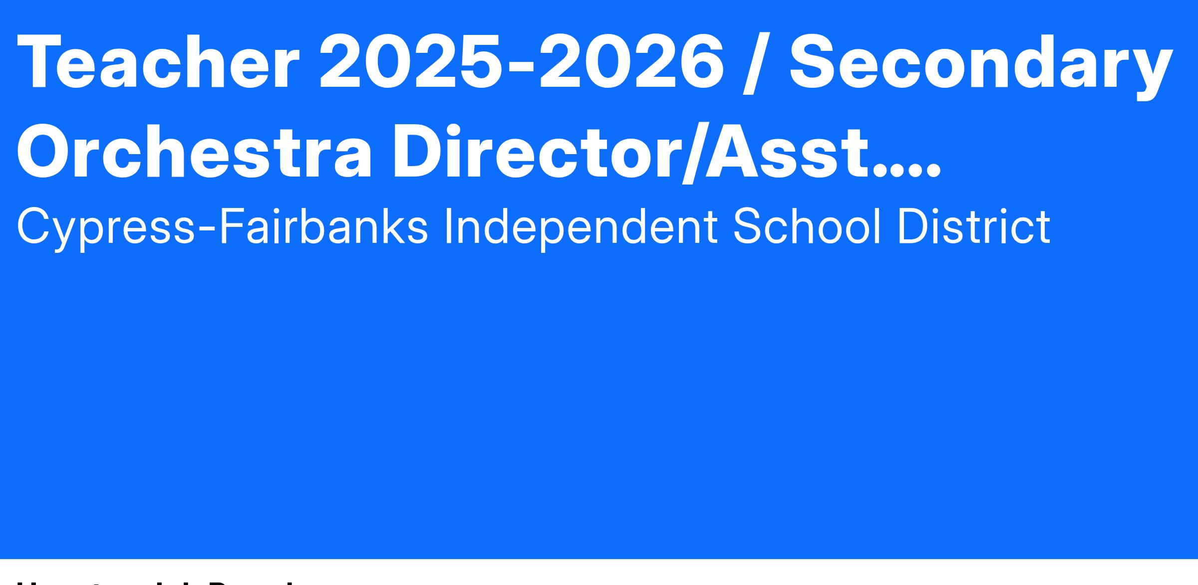 - For Head Director applicants, demonstrates ability to grow and maintain a large, successful orchestra program in a public school setting.