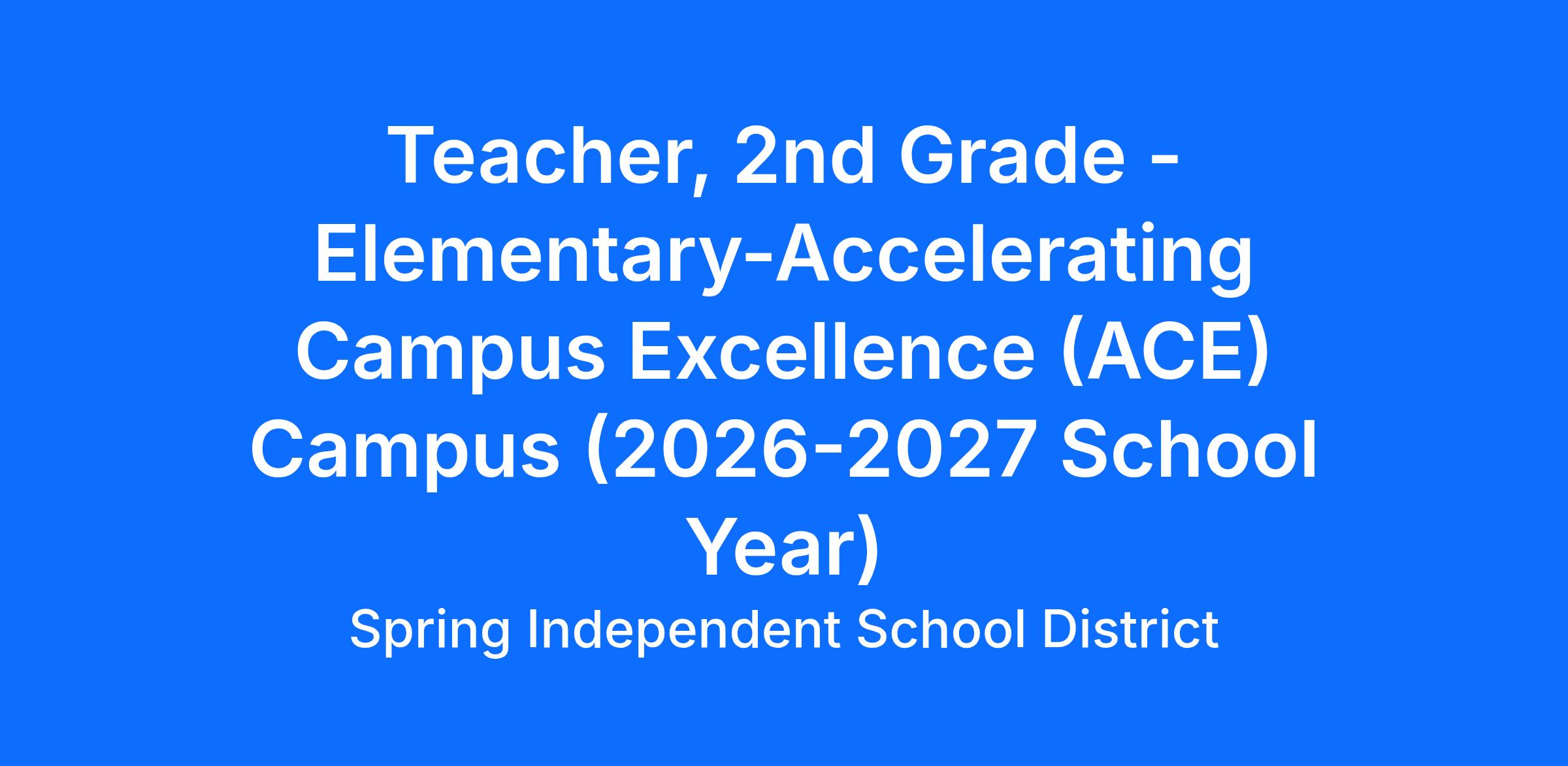 JOB TITLE: 2nd Grade Elementary Teacher – Accelerating Campus Excellence (ACE) Campus (2026-2027 School Year)