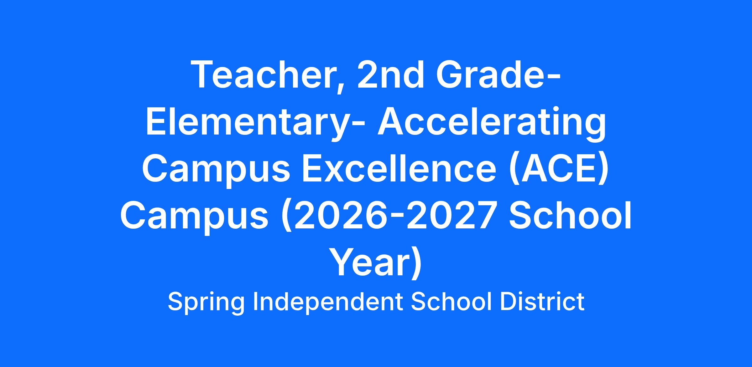 JOB TITLE: 2nd Grade Elementary Teacher – Accelerating Campus Excellence (ACE) Campus (2026-2027 School Year)