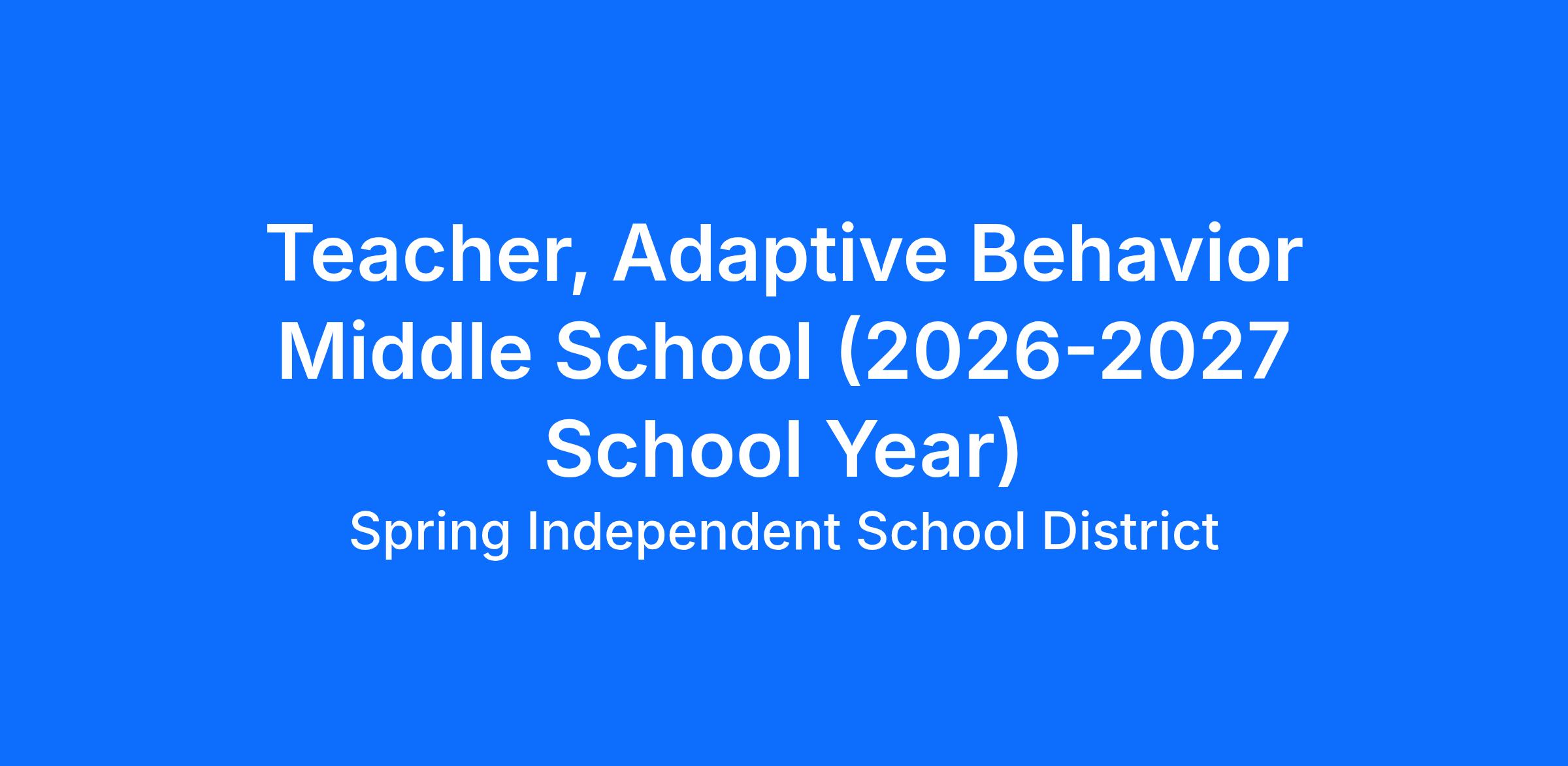 JOB TITLE: Adaptive Behavior (AB) Teacher (2026-2027 School Year)
