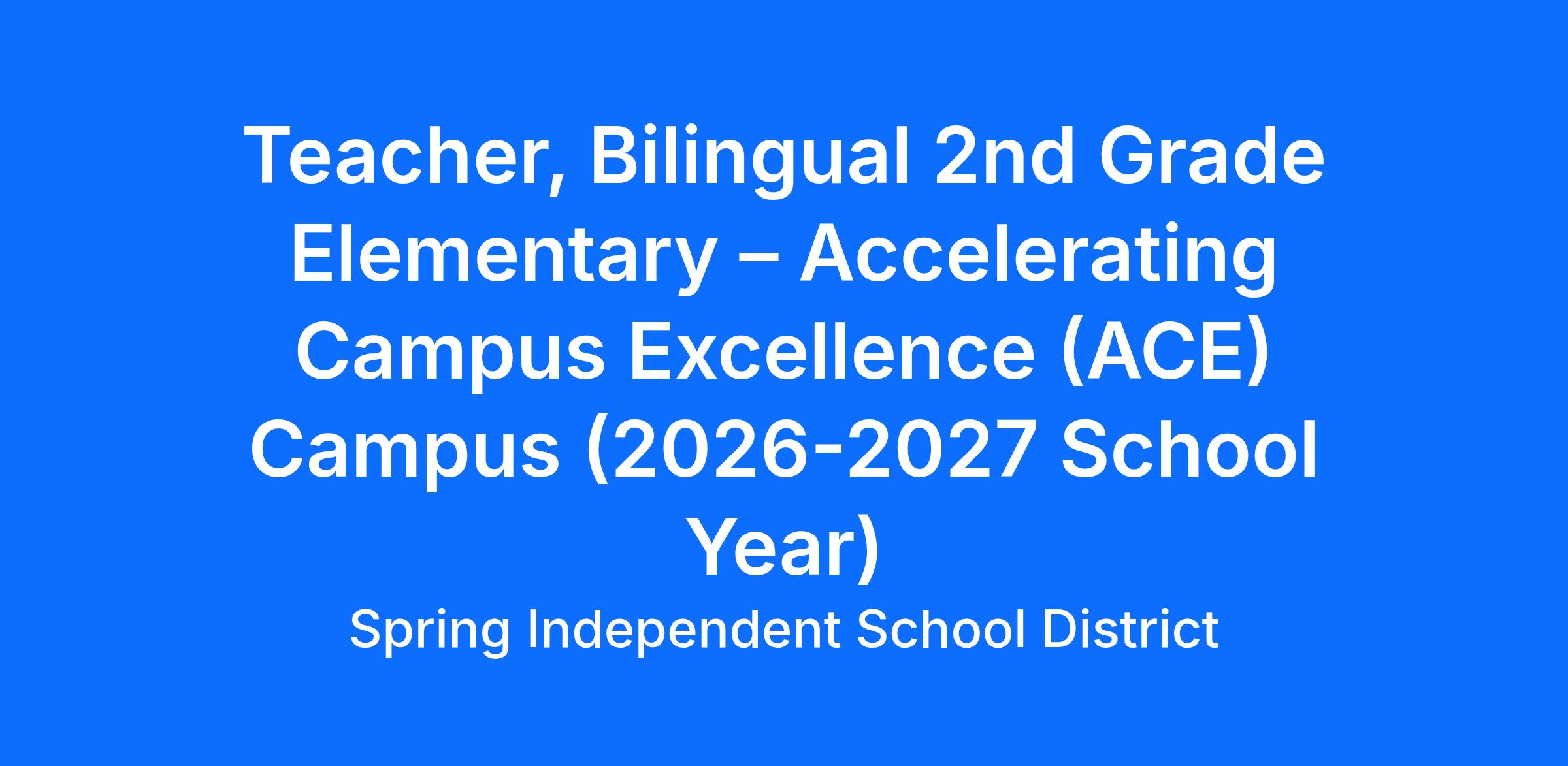 JOB TITLE: Teacher, Bilingual 2nd Grade Elementary – Accelerating Campus Excellence