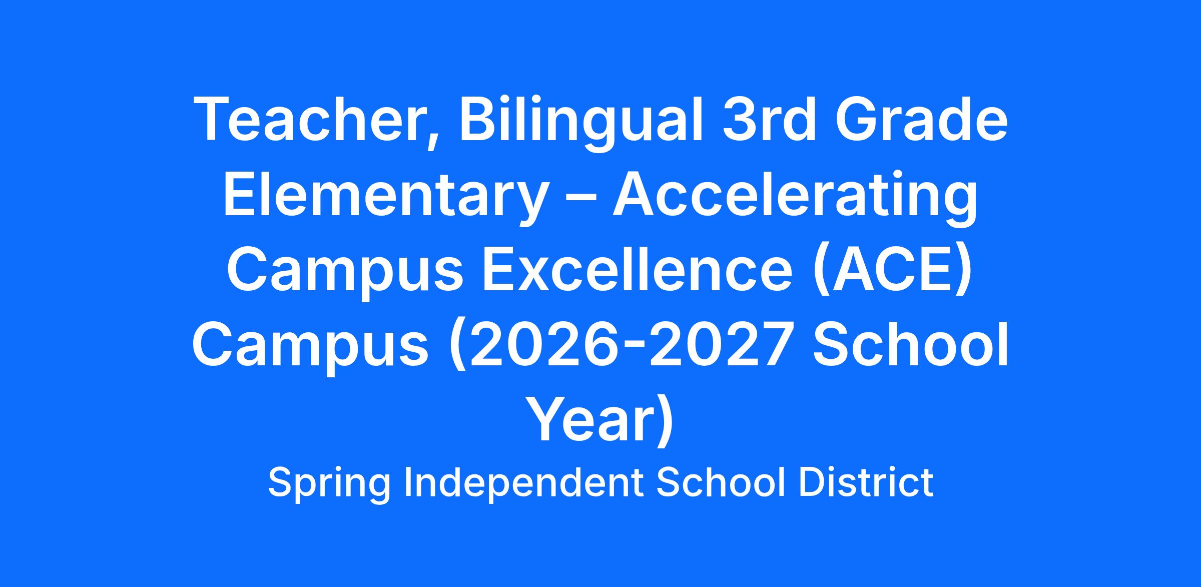 JOB TITLE: 3rd Grade Bilingual Elementary Teacher – Accelerating Campus Excellence