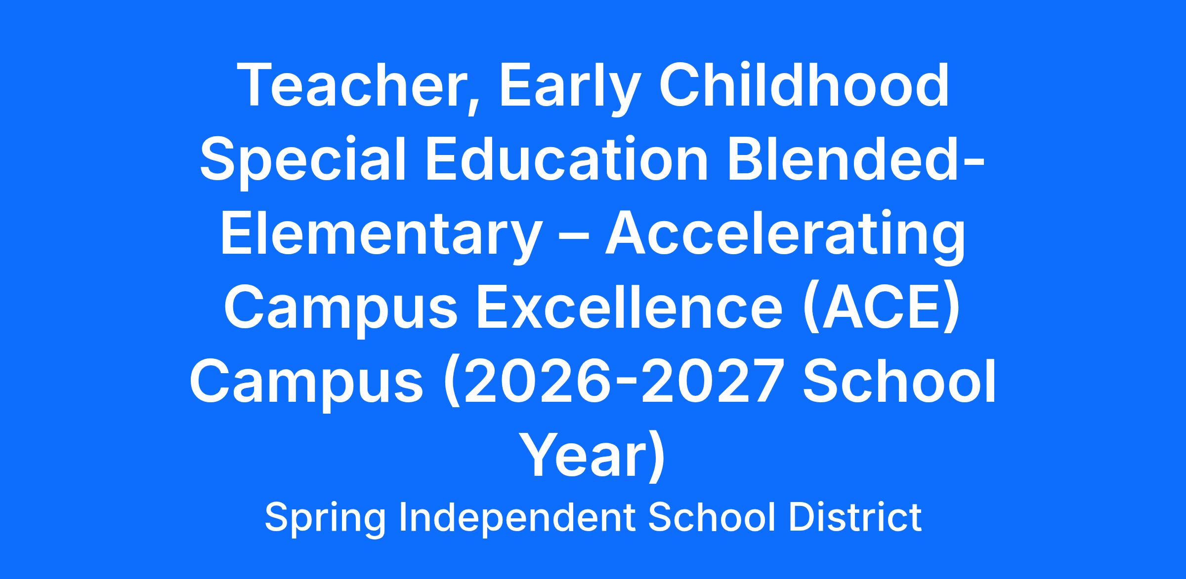 JOB TITLE: Teacher, Early Childhood Special Education Blended- Elementary – Accelerating Campus Excellence (ACE)