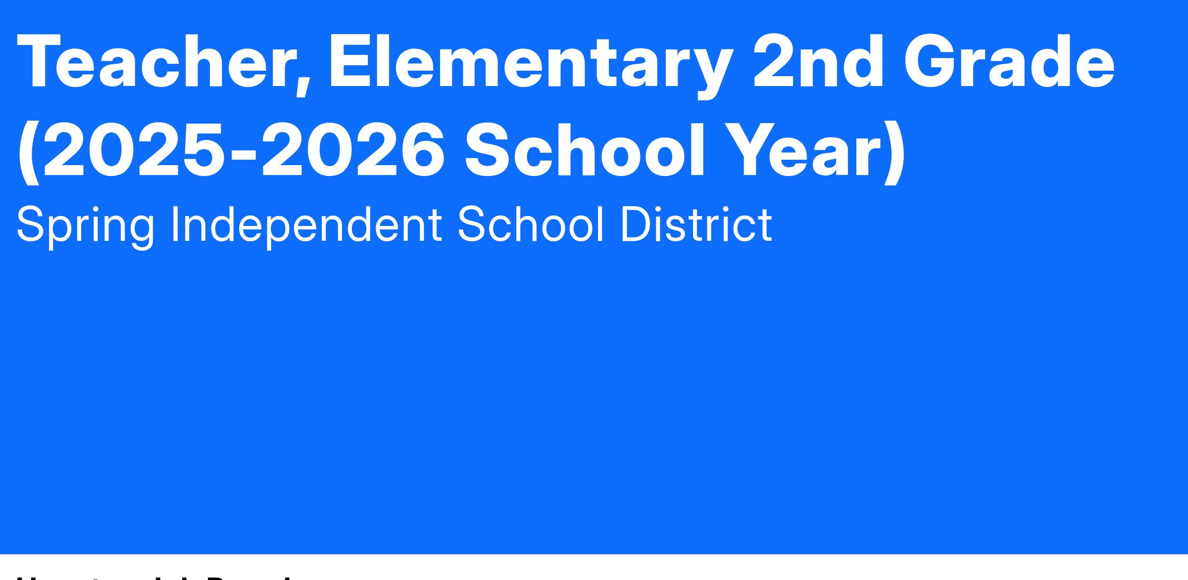 Teacher, Elementary 2nd Grade (2025-2026 School Year)