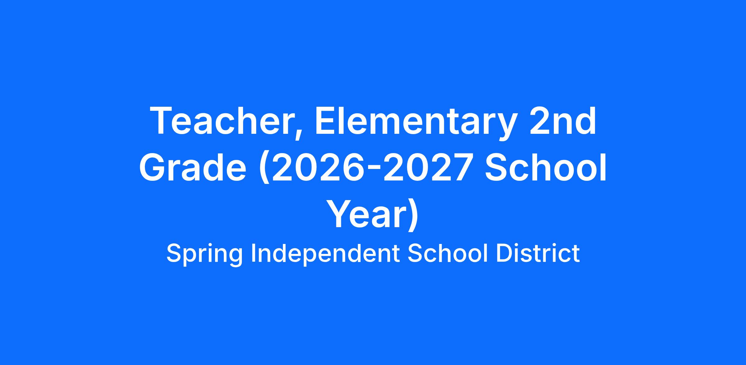 JOB TITLE: 2nd Grade Elementary School Teacher (2026-2027 School Year)