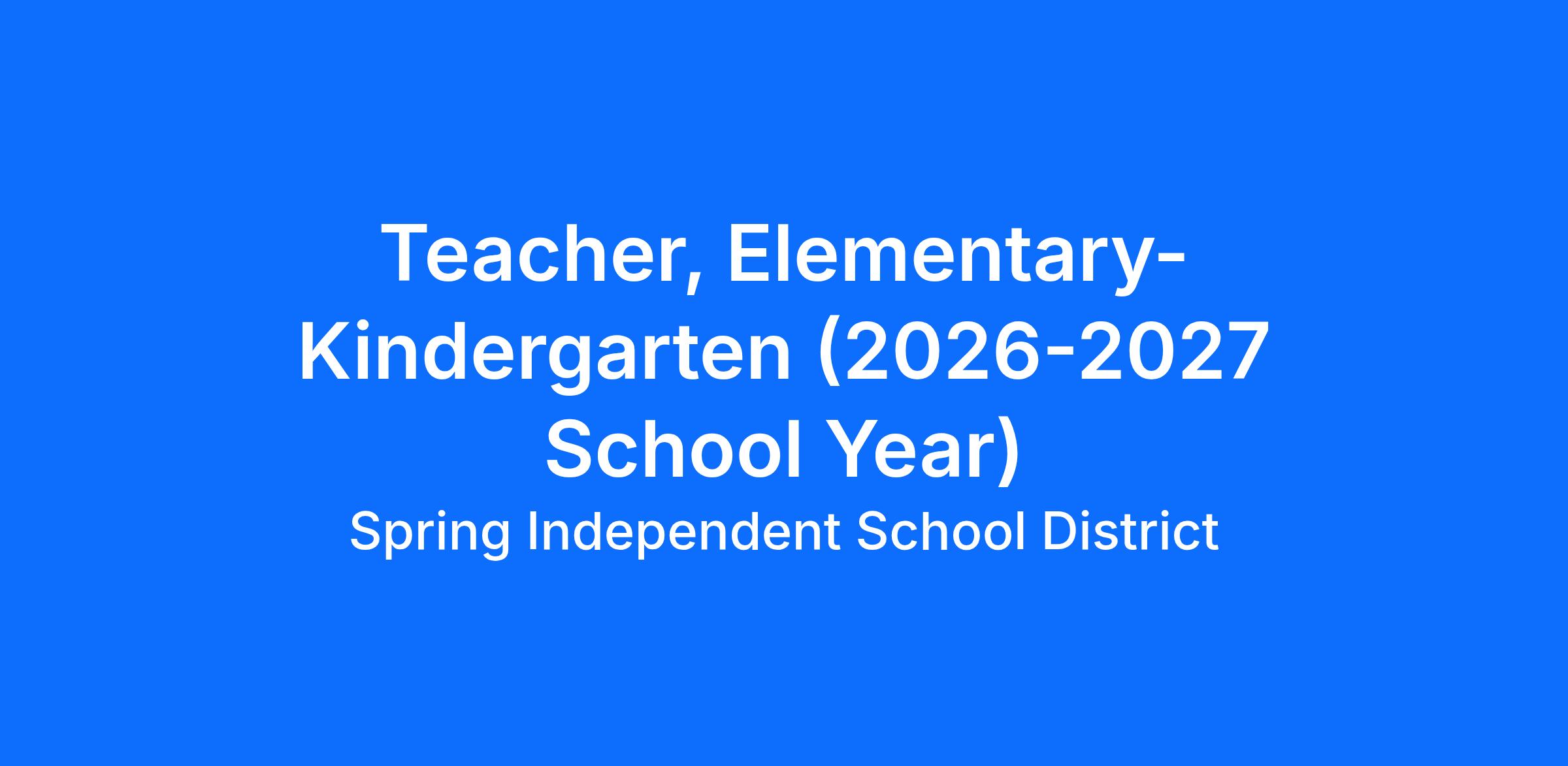 JOB TITLE: Kindergarten Elementary School Teacher (2026-2027 School Year)
