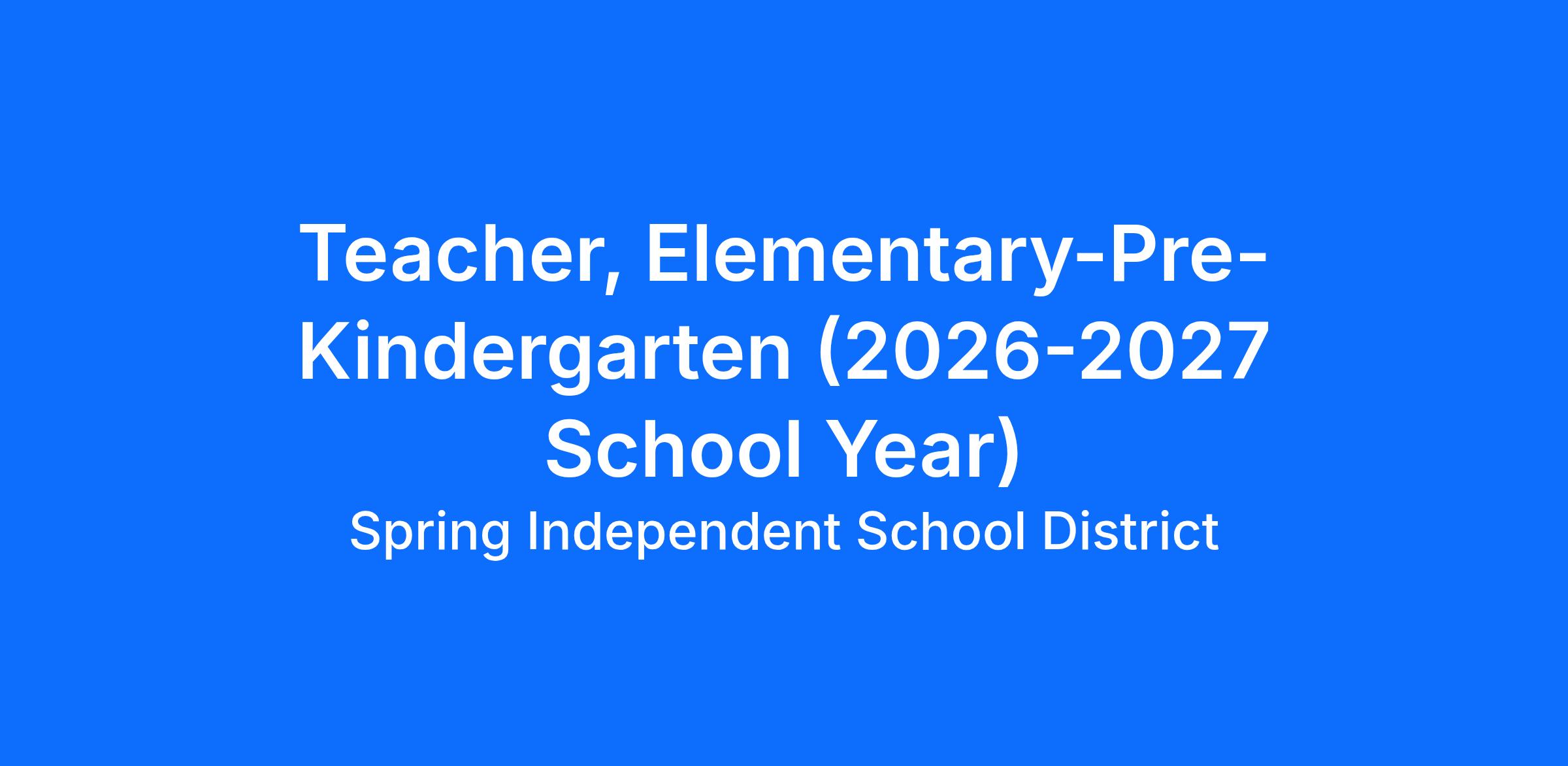 JOB TITLE: Pre-Kindergarten Elementary School Teacher (2026-2027 School Year)