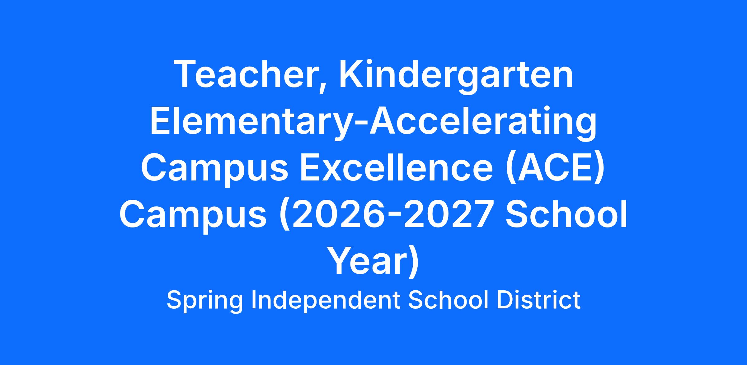 JOB TITLE: Kindergarten Elementary Teacher – Accelerating Campus Excellence (ACE) Campus (2026-2027 School Year)