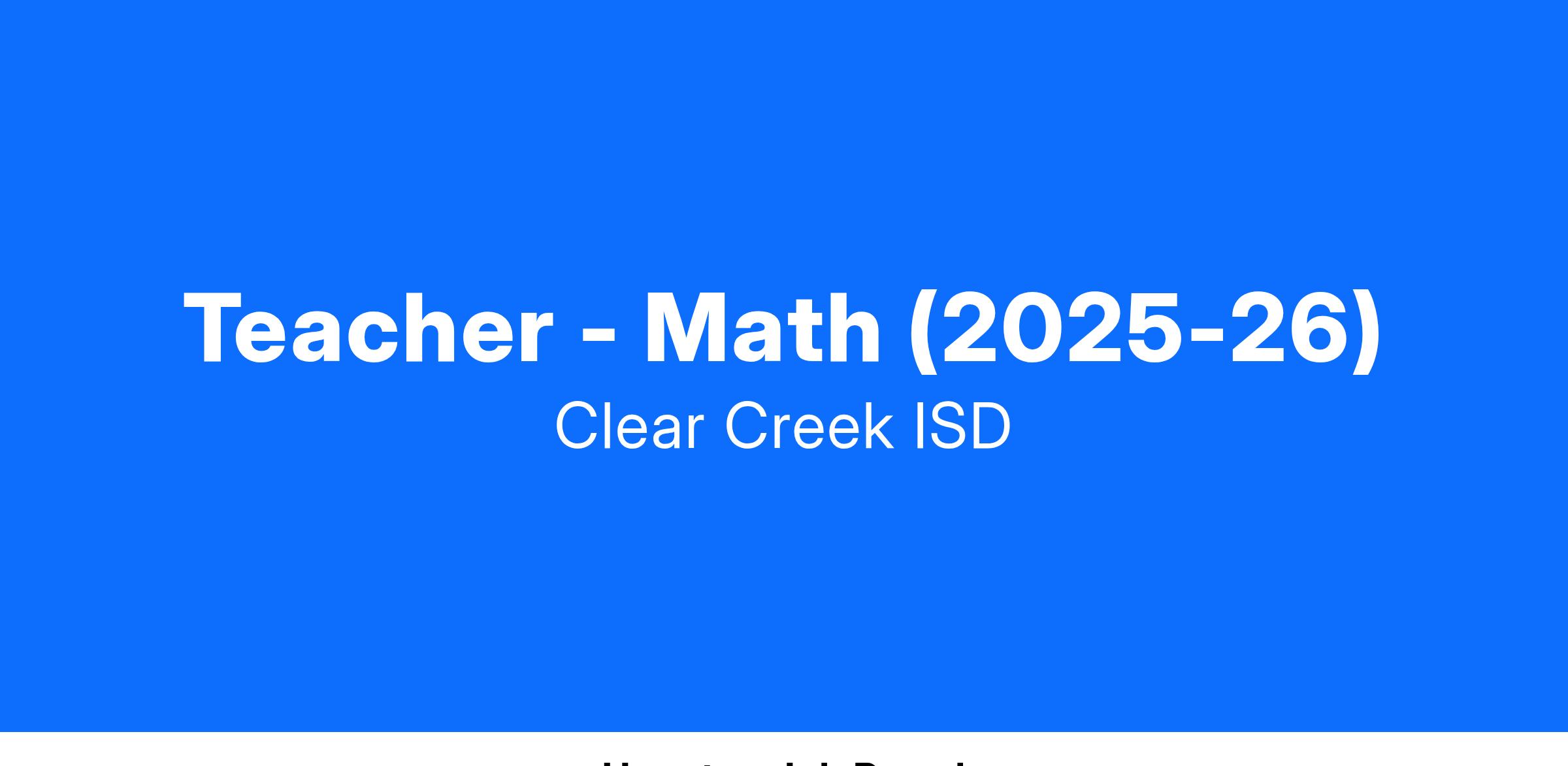 - Actively engage in actions that contribute to the overall mission and strategic plan of Clear Creek ISD.