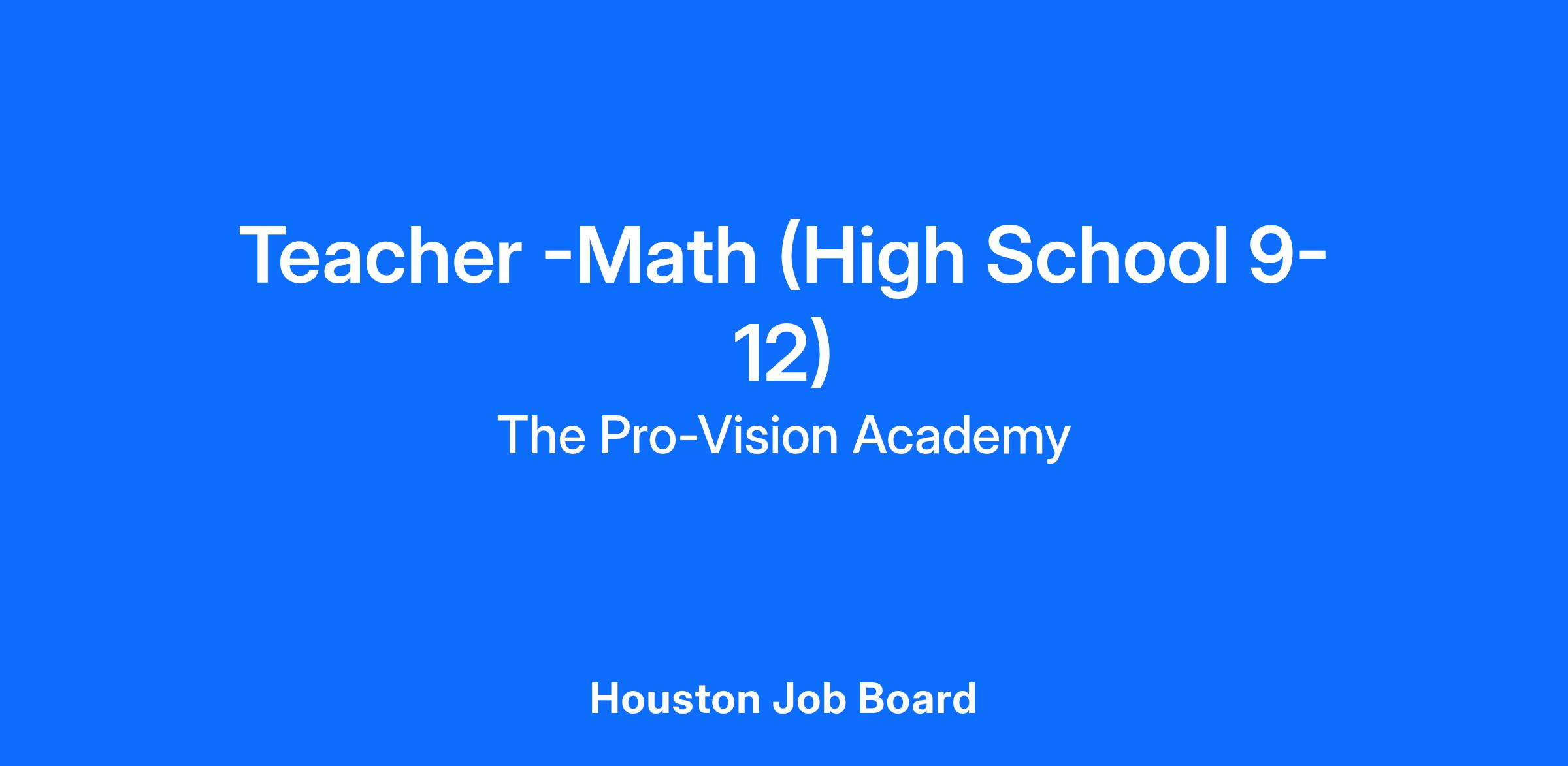 This description describes the general responsibilities and requirements for the stated position and in no way is an exhaustive list. The Pro-Vision Academy maintains the right to assign or reassign responsibilities to this position at any time.