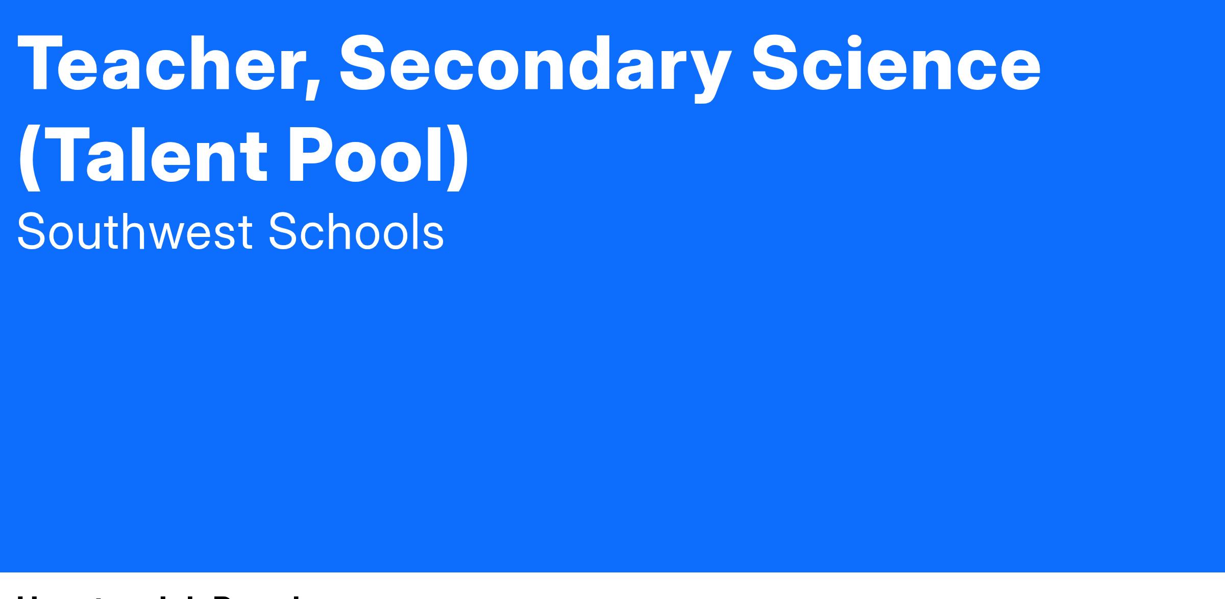 Southwest Public is seeking talented and passionate Science Teachers to join our Talent Pool. By applying, you will be considered for future opportunities as they become available. This is not for a specific opening at this time, but we are always looking for exceptional candidates to join our team.
