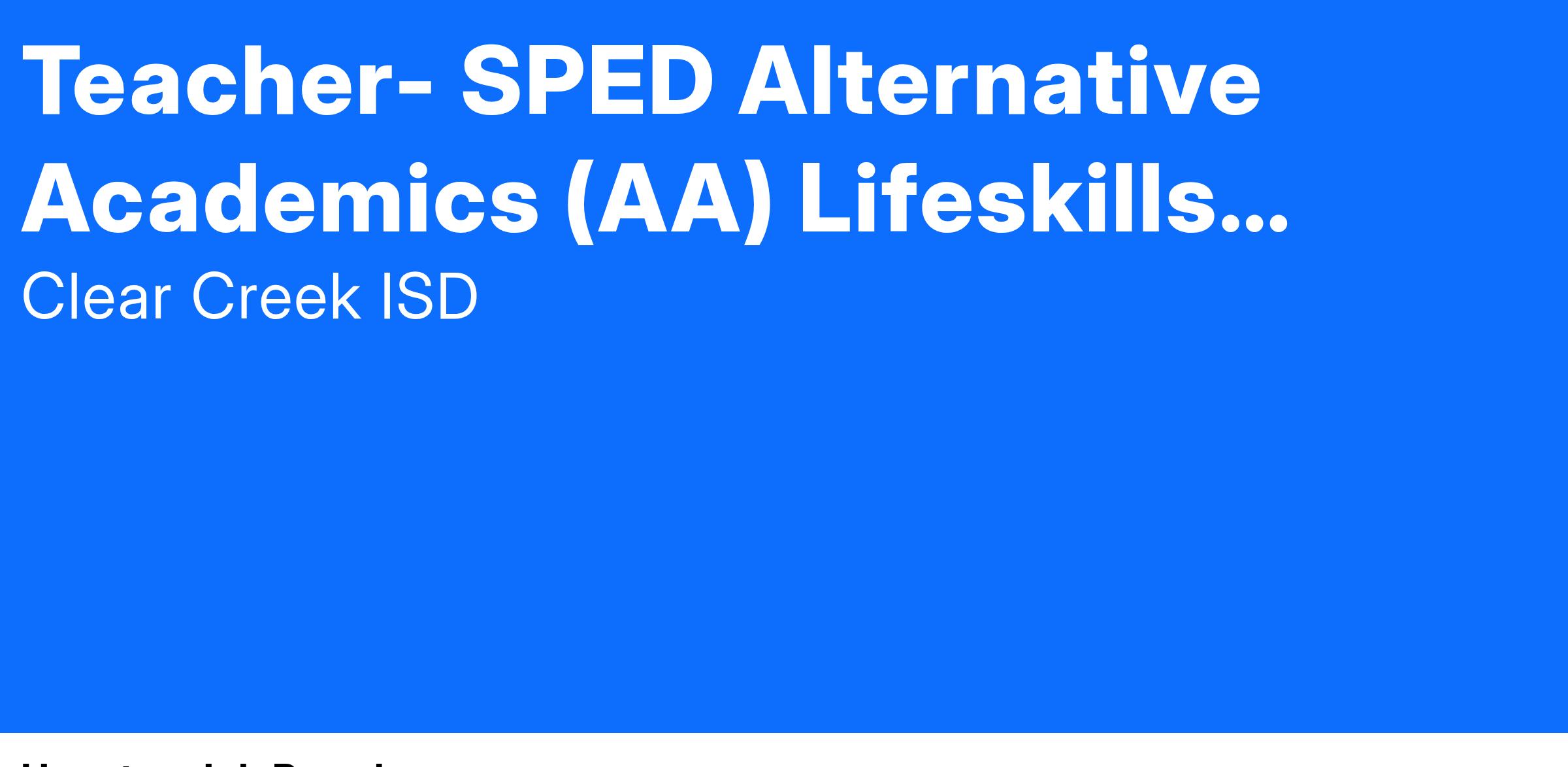 Teacher- SPED Alternative Academics (AA) Lifeskills (2025-26)