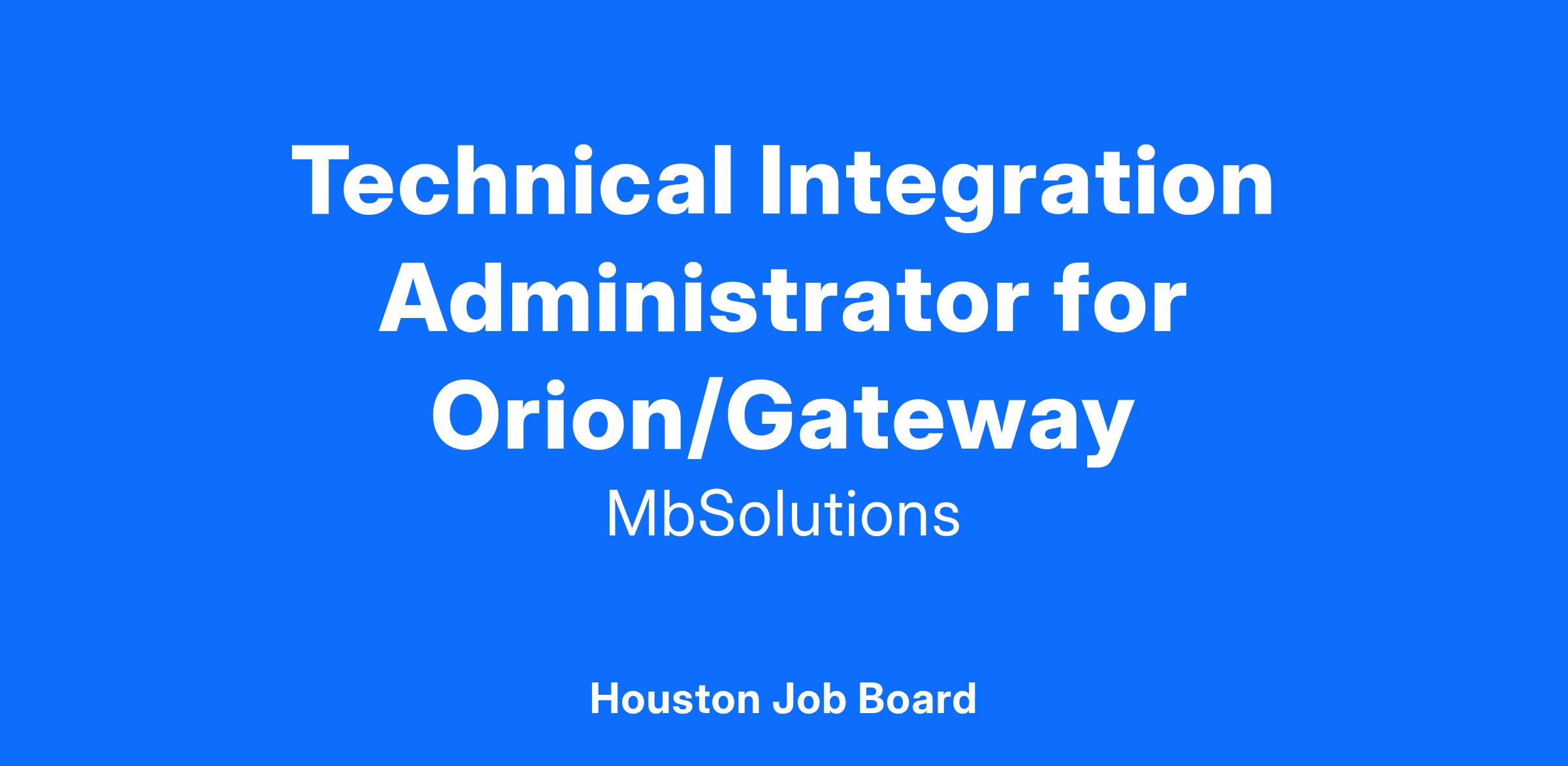 We have an exciting opportunity for a Technical Integration Administrator for Orion/Gateway to join the team with Oceaneering, a teammate company.