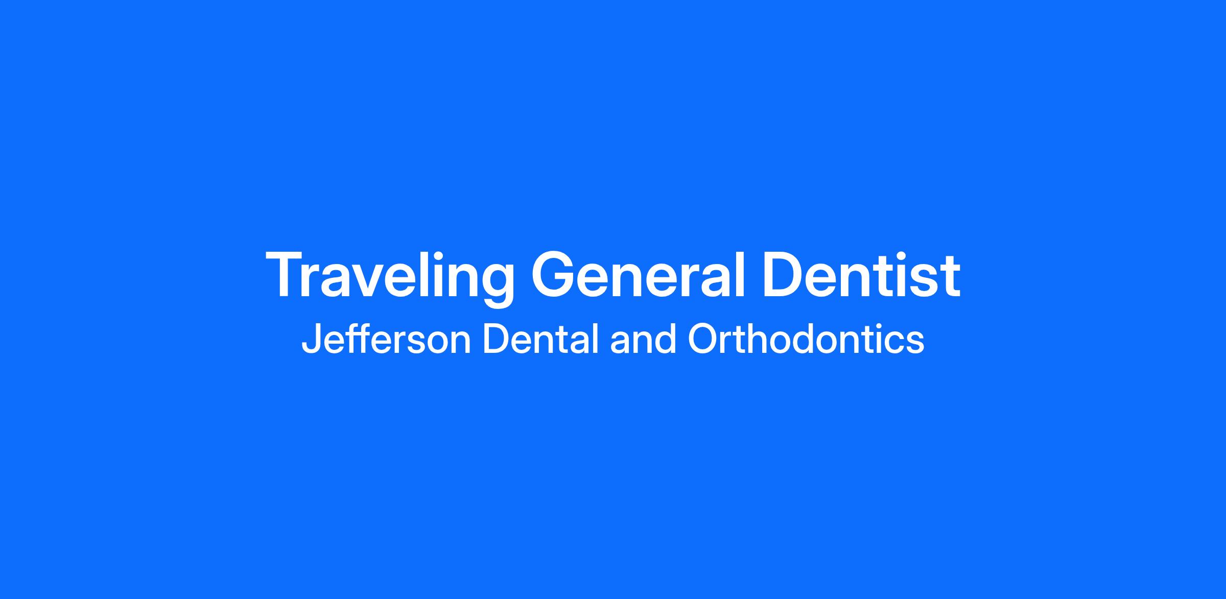Jefferson Dental & Orthodontics is now hiring a Full Time General Dentist to join our team as a traveling Dentist who will support our North Houston clinics!