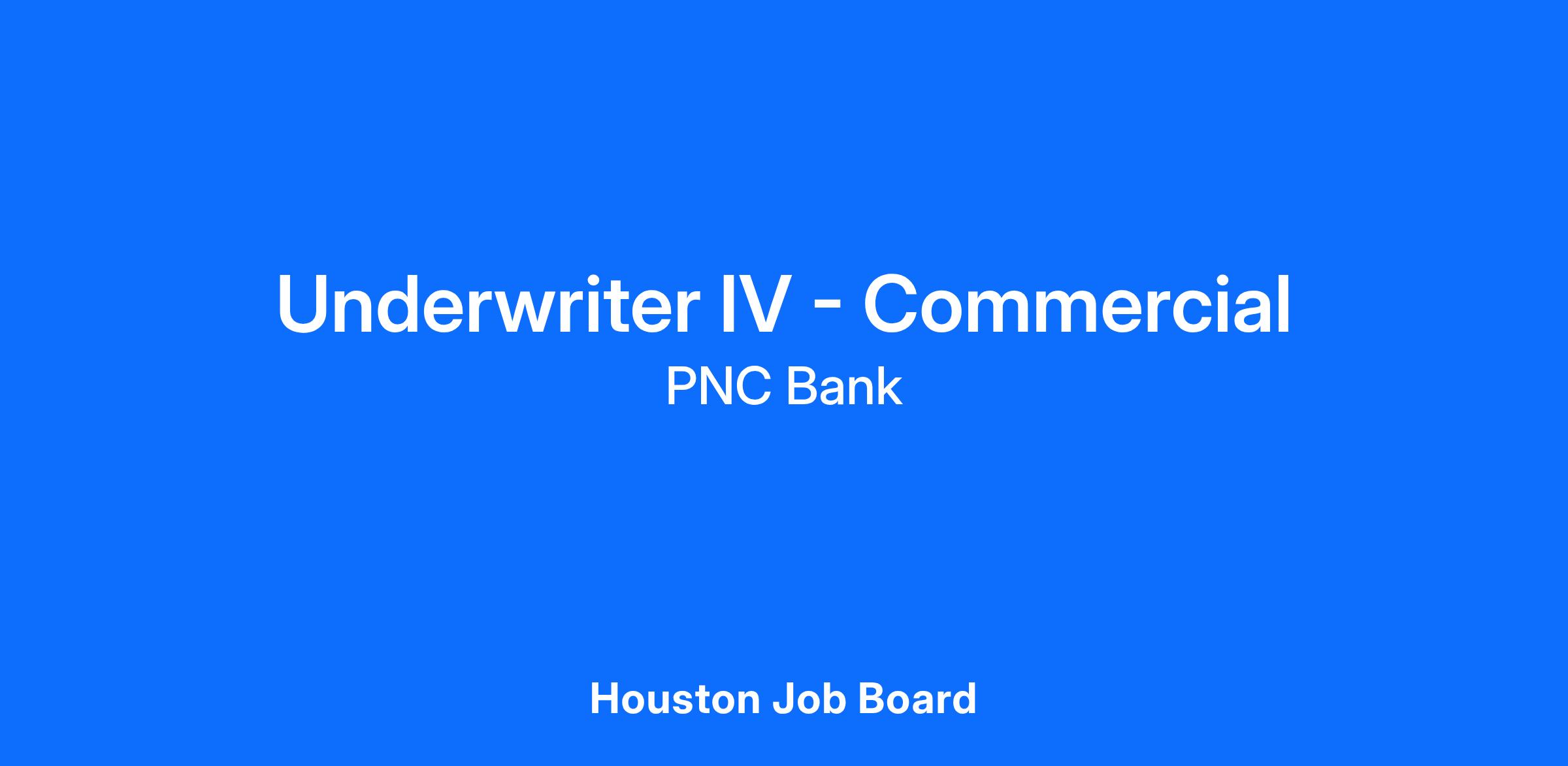 At PNC, our people are our greatest differentiator and competitive advantage in the markets we serve. We are all united in delivering the best experience for our customers. We work together each day to foster an inclusive workplace culture where all of our employees feel respected, valued and have an opportunity to contribute to the company’s success. As an Underwriter IV - Commercial within PNC's Central Credit Products Group organization, you will be based remotely in California.