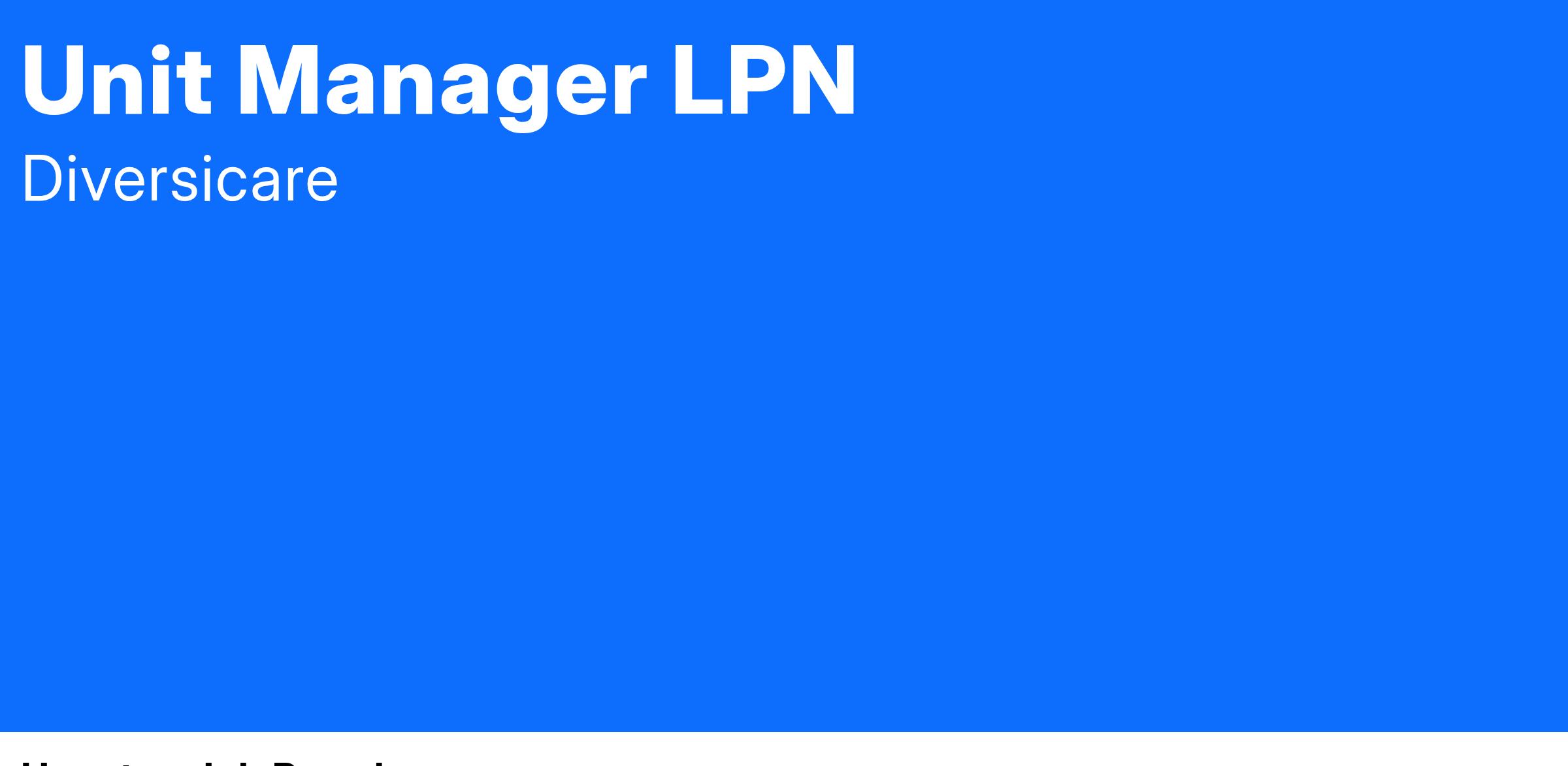 Join our team at Diversicare as a Unit Manager and take the next step in growing your clinical leadership career.