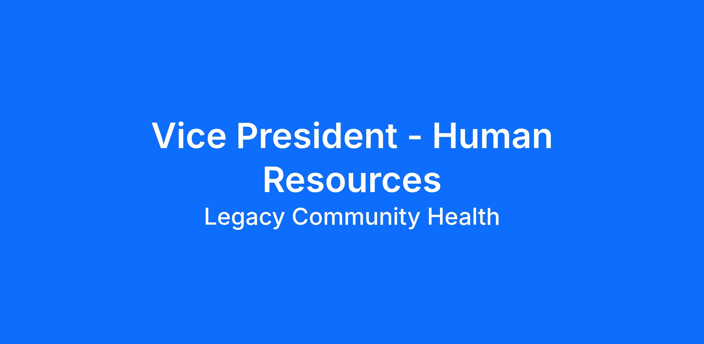 The Vice President of Human Resources (VP of HR) will serve as a pivotal member of Legacy Community Health's senior executive leadership team, driving the strategic vision for the organization's people functions. This role is instrumental in aligning human resources initiatives with organizational goals, ensuring compliance with regulatory standards, and fostering a culture of excellence and engagement.