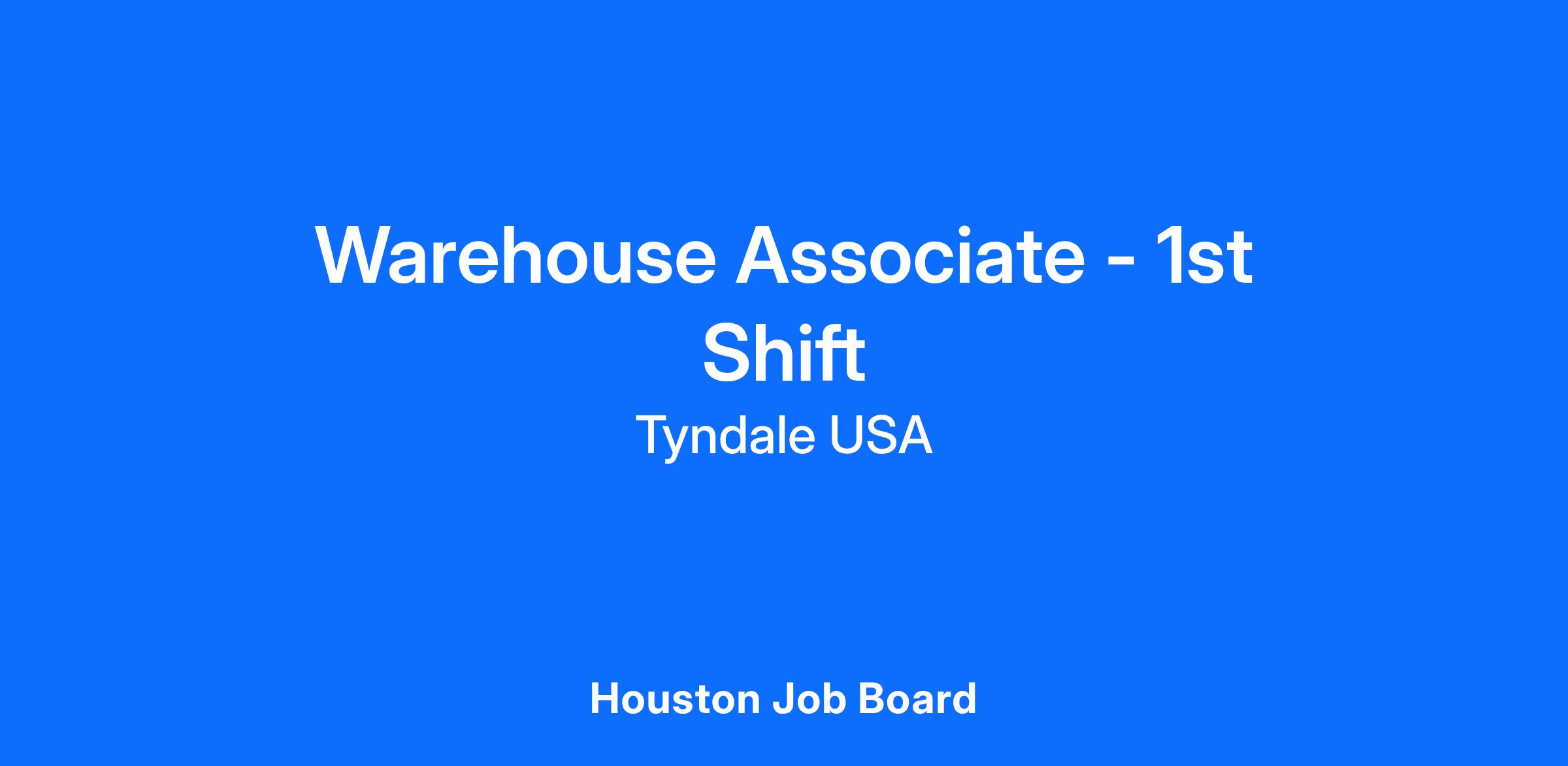 The Tyndale Company is seeking an Warehouse Associate on 1st Shift in our Houston Distribution Center! Our Warehouse associate will pick orders and replenish picking locations on an as needed basis. Verify, label and process incoming garment shipments as per receiving procedure. Pack orders ensuring the correct items and quantities are being shipped, using hand-held device to scan garment bar codes to ensure 100% accuracy.