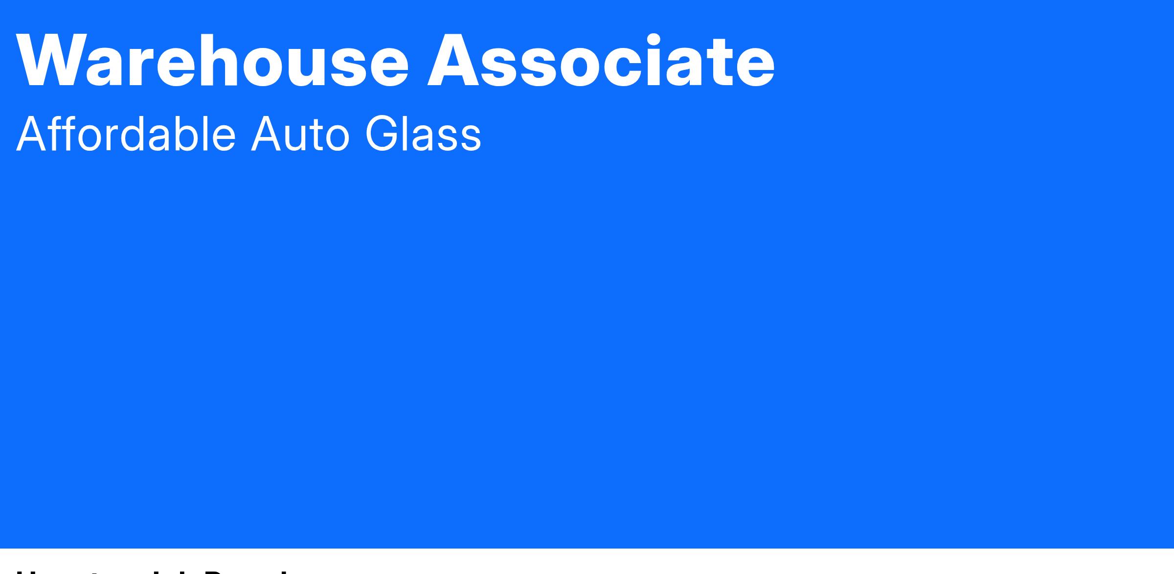Affordable Auto Glass of Houston, TX is scouting for a full-time Warehouse Associate to join our fast-paced team. This position starts at $12.00 an hour.