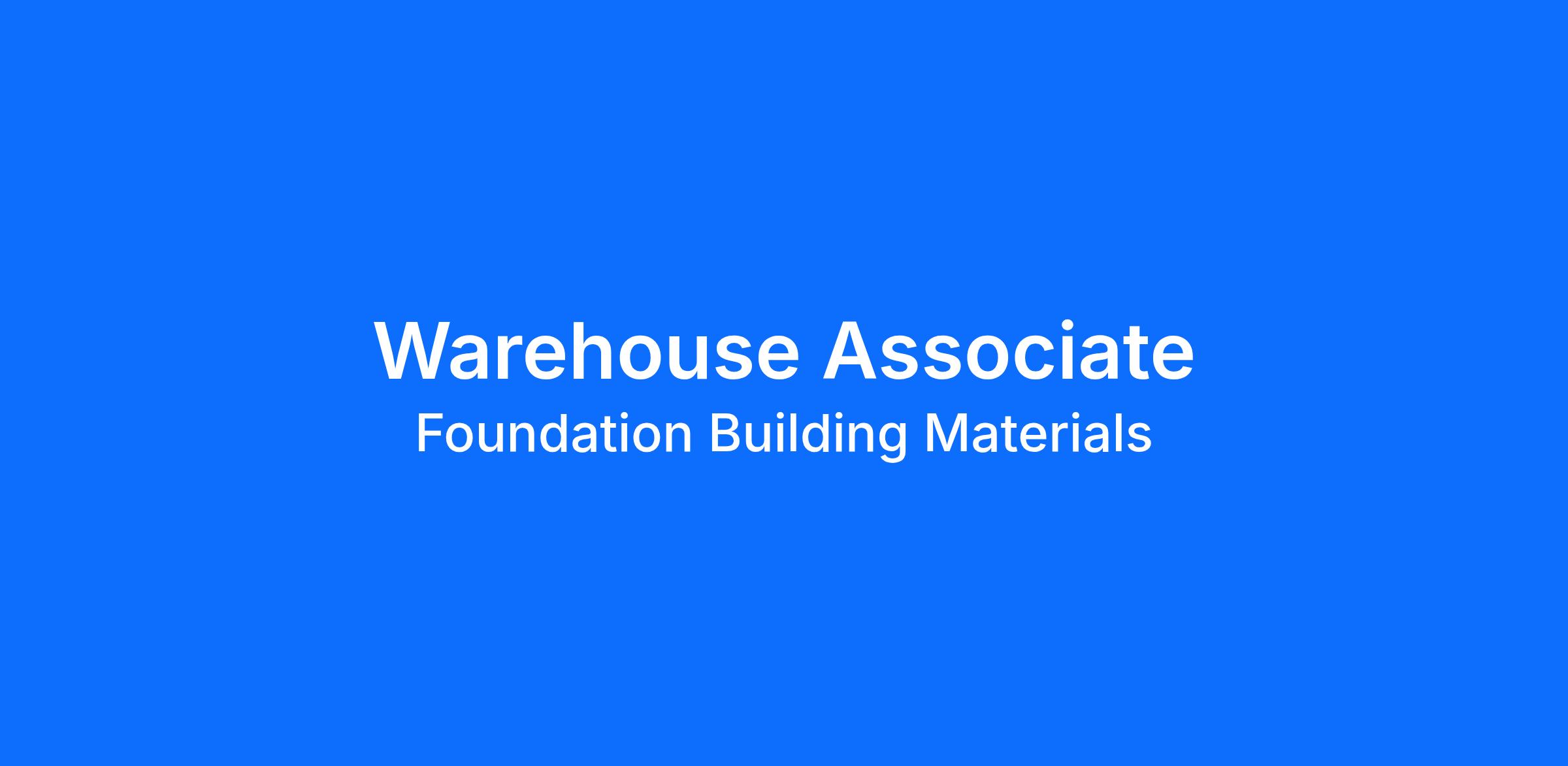 At Foundation Building Materials (FBM), Warehouse Associates keep operations running smoothly receiving, organizing, and safely loading materials with precision and pride. Join a fast-paced, hands-on team that values integrity, reliability, and career growth.