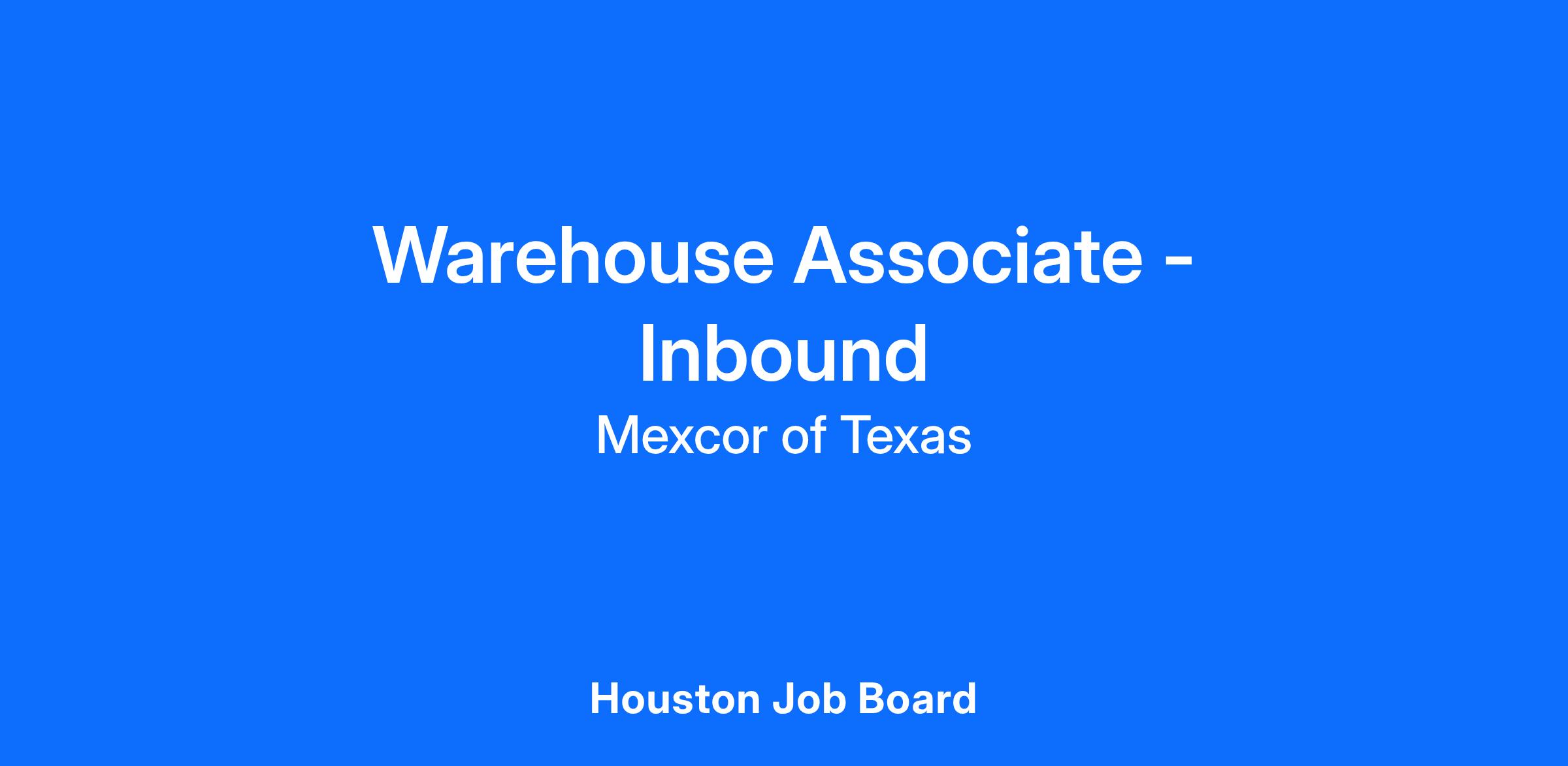 Warehouse Associate, Inbound