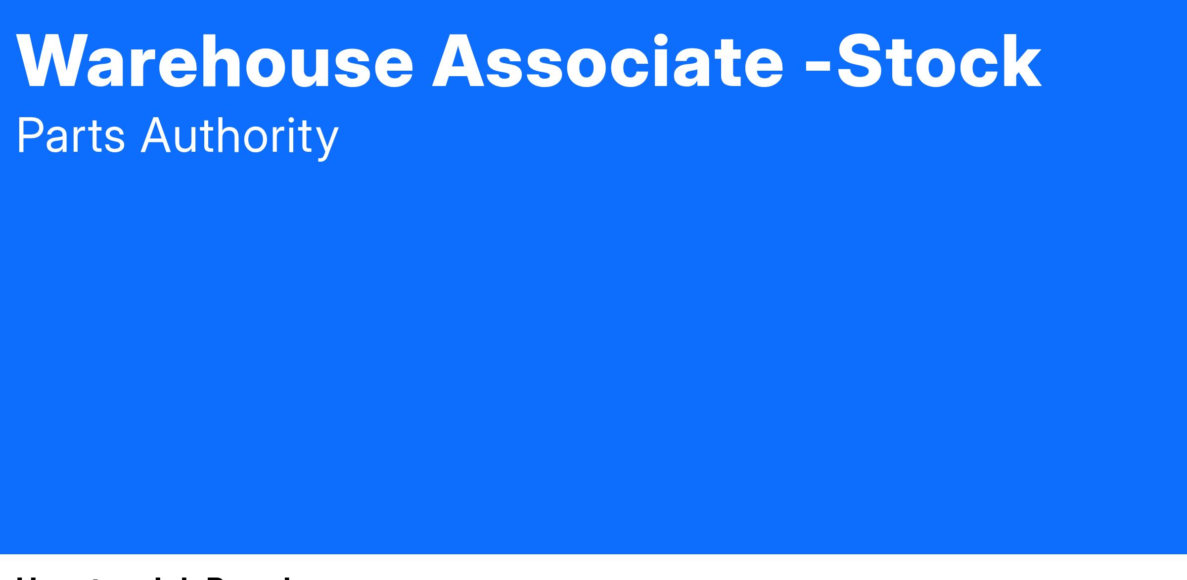 We are rapidly expanding and looking for candidates to join our family! If you enjoy full-time employment, great pay& benefits and the opportunity for advancement, look no further. Join our Parts Authority Team today and fill the role of Warehouse Associate - Stock.