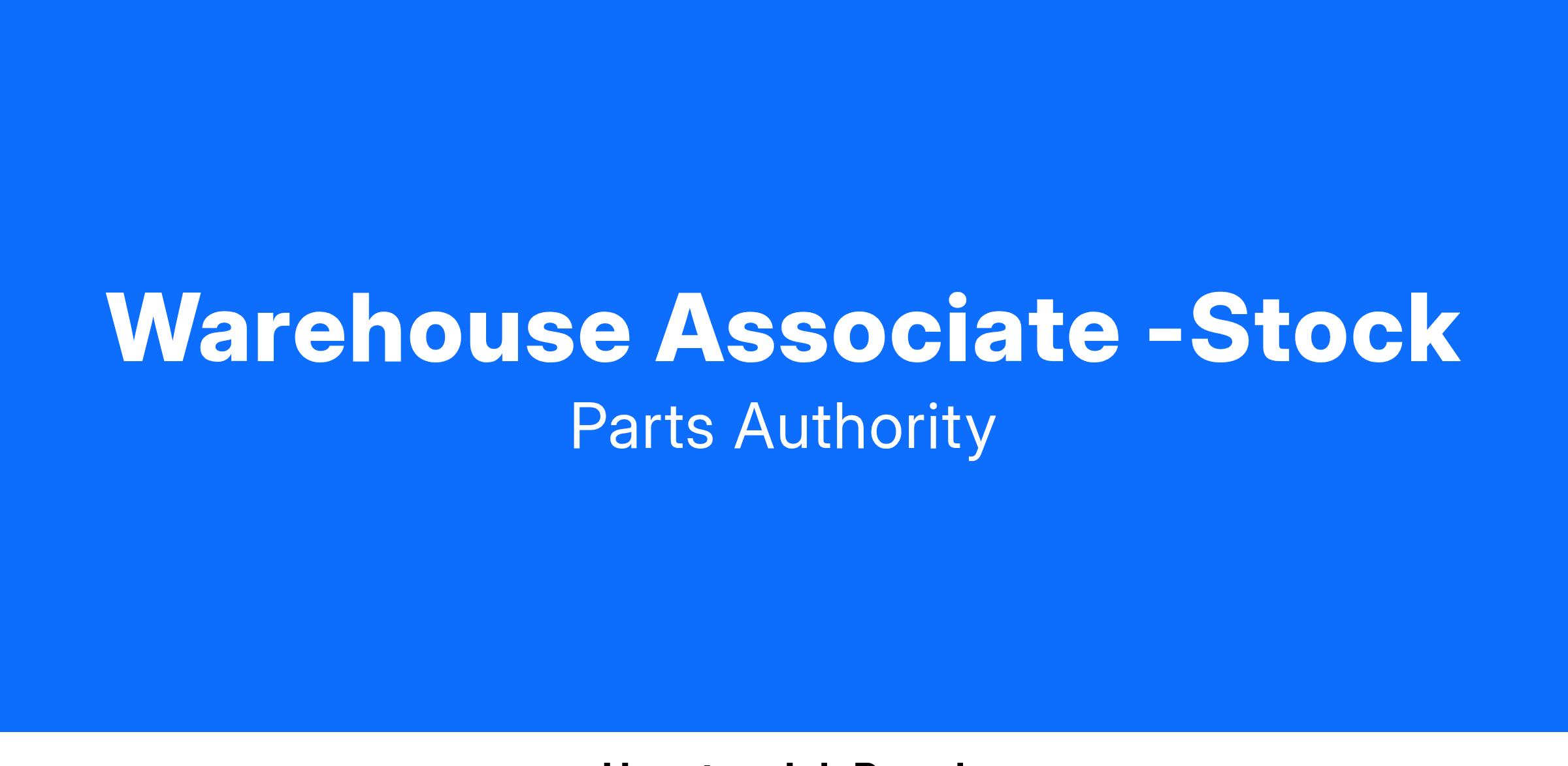 We are rapidly expanding and looking for candidates to join our family! If you enjoy full-time employment, great pay& benefits and the opportunity for advancement, look no further. Join our Parts Authority Team today and fill the role of Warehouse Associate - Stock.