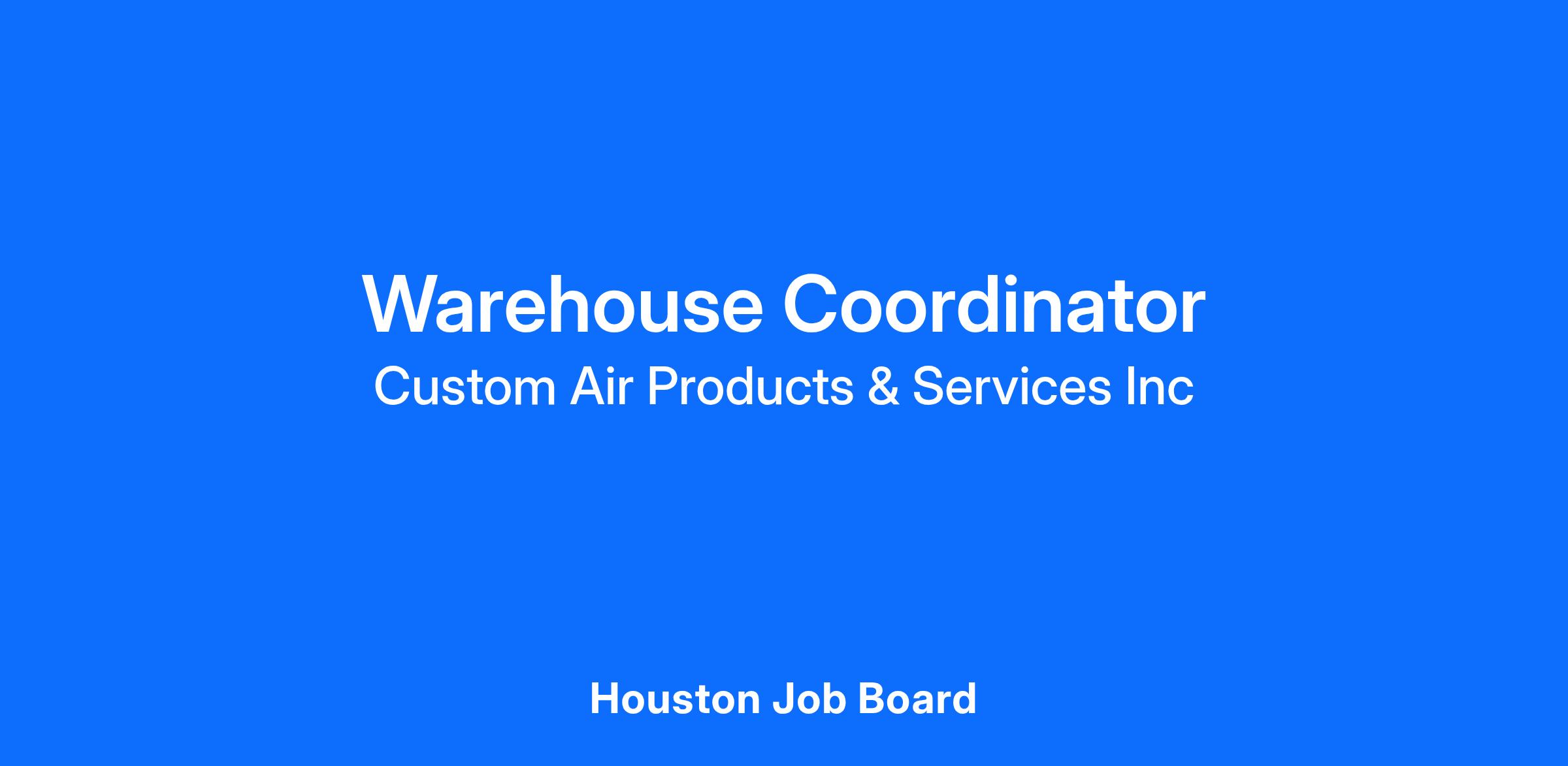 Are you a highly motivated individual with a passion for ensuring regulatory compliance and meticulous attention to detail? At Custom Air Products & Services, Inc., we're dedicated to delivering top-notch service and ensuring that our commercial and industrial HVAC systems meet the highest standards of compliance. We take pride in our commitment to excellence in every aspect of our operations. We are currently seeking a Warehouse Coordinator to join our team.