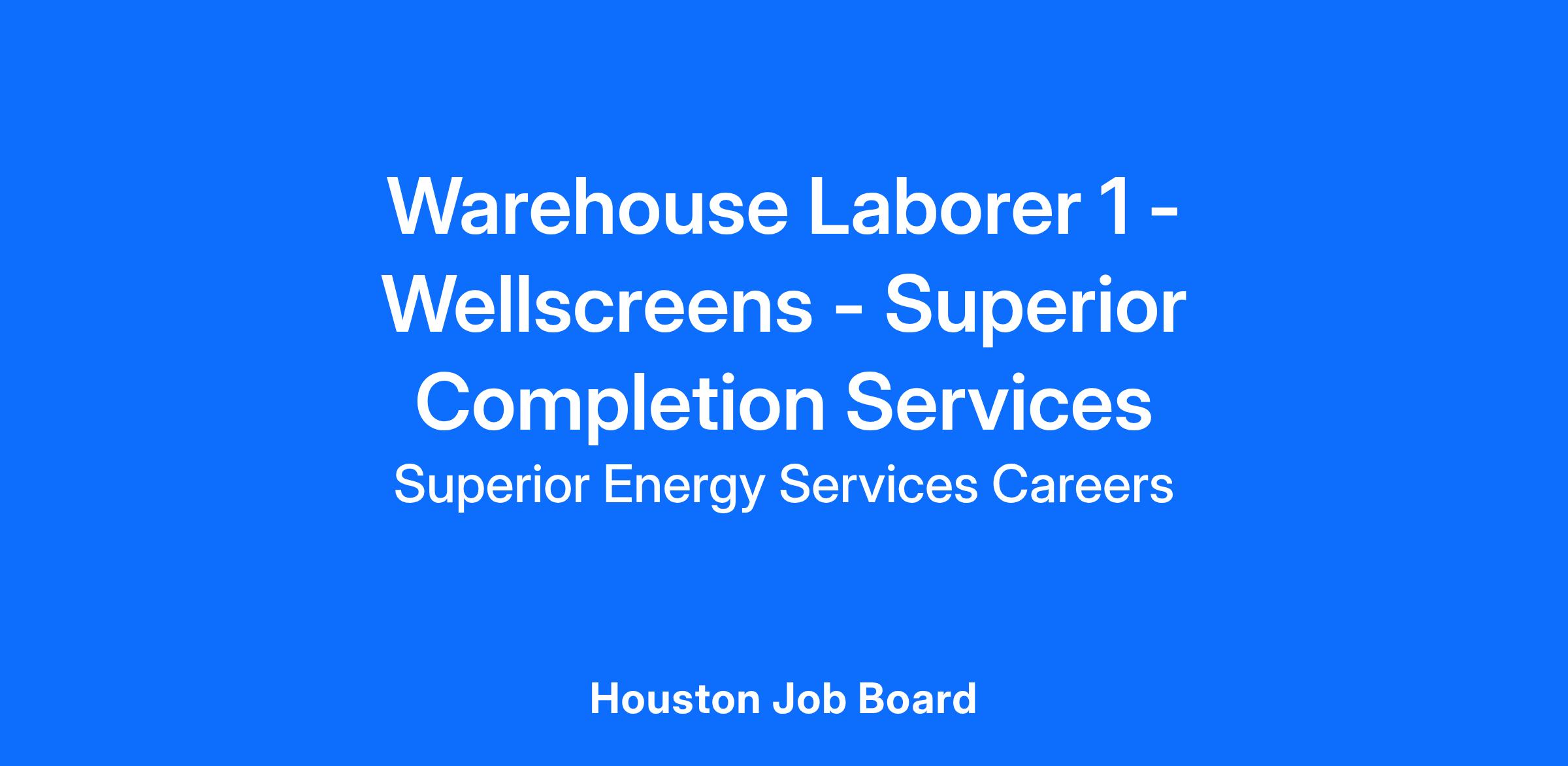 Superior Completion Services is excited to seek a Warehouse Laborer - 1 in our Wellscreens department for our Aldine Westfield Office in Houston, TX.