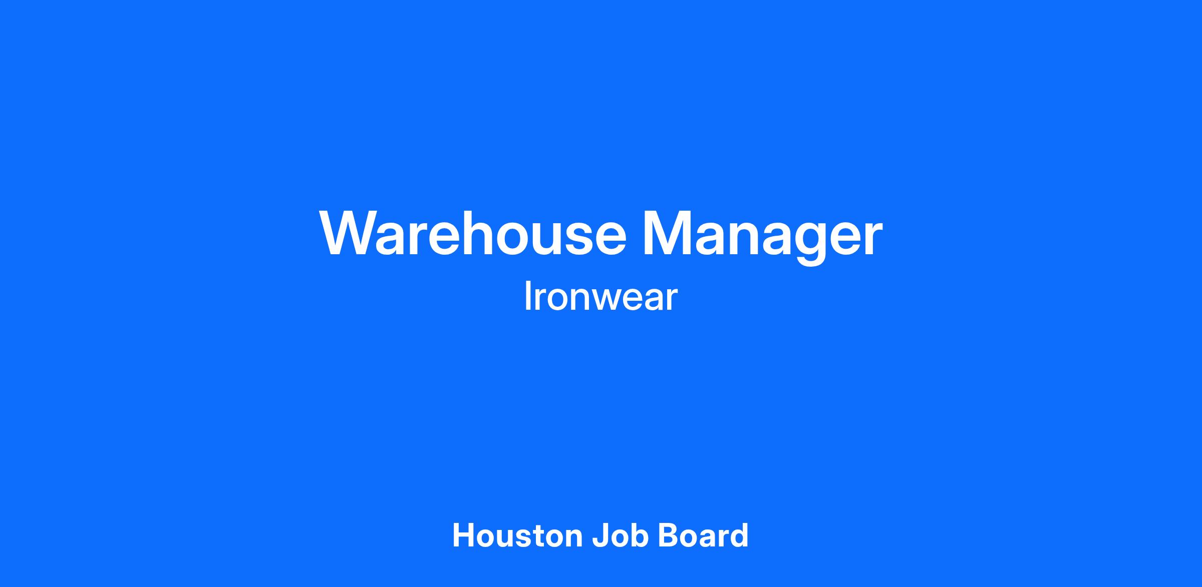 DescriptionIronwear is actively seeking a dedicated and skilled Warehouse Manager to join our dynamic team. In this pivotal role, you will ensure the seamless operation of our warehouse, focusing on efficiency, safety, and exceptional service delivery. You will oversee all aspects of warehousing operations, including inventory management, staff supervision, and compliance with safety regulations. The ideal candidate should be an excellent communicator with a proven track record in warehouse management.