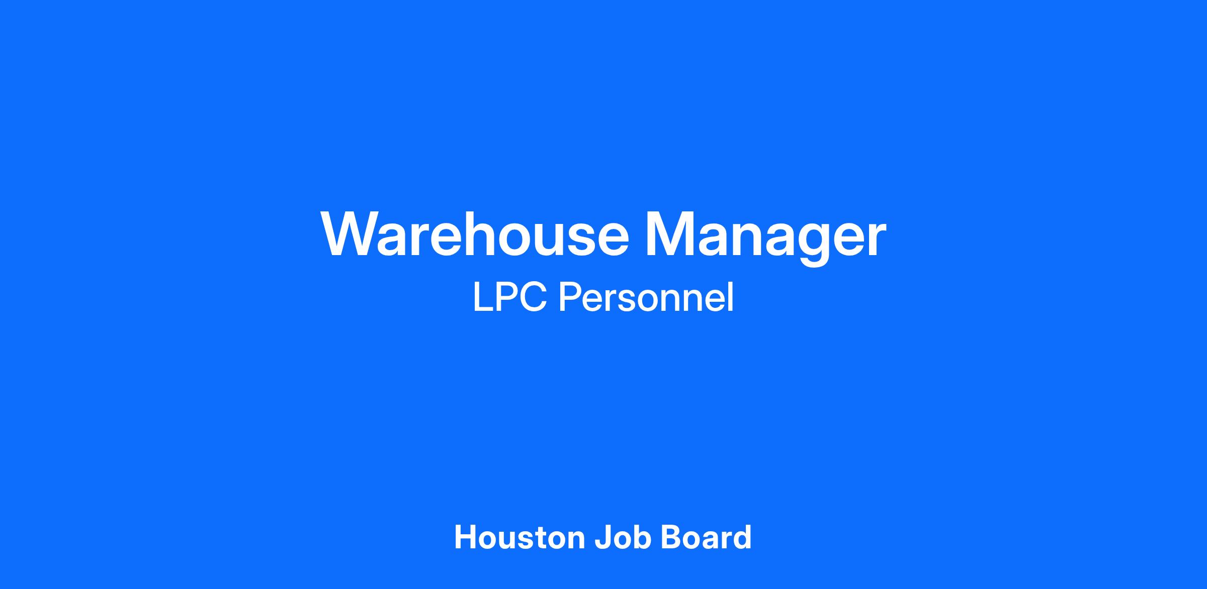 NOW HIRING: WAREHOUSE MANAGER in HOUSTON, TX