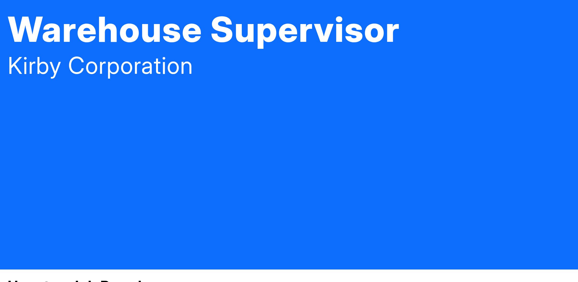 Stewart & Stevenson is Now Hiring a Warehouse Superivosr at 8631 East Freeway Houston, TX 77029.