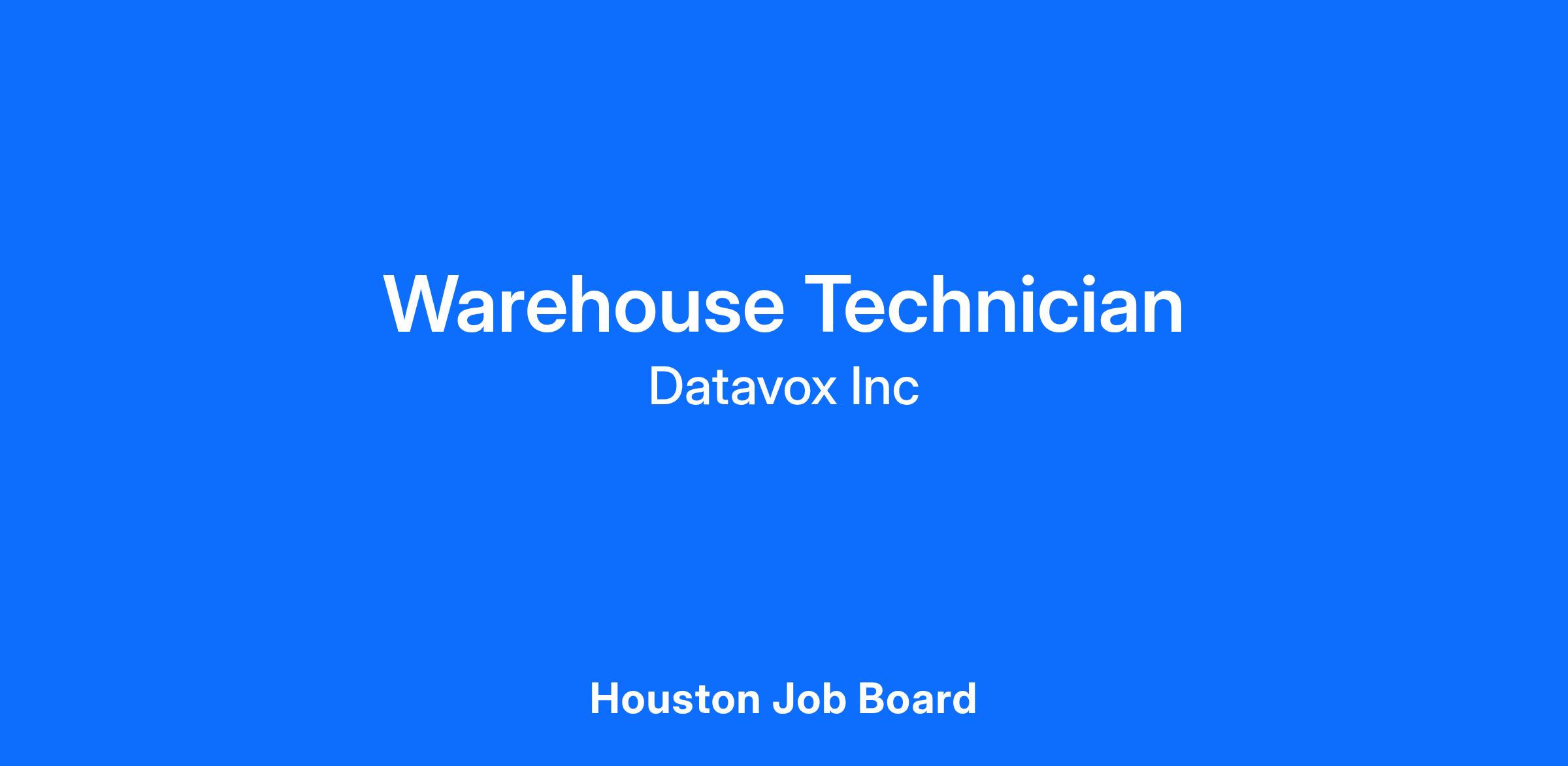 We are seeking a dedicated and detail-oriented Warehouse Technician to join our team in Houston, Texas!