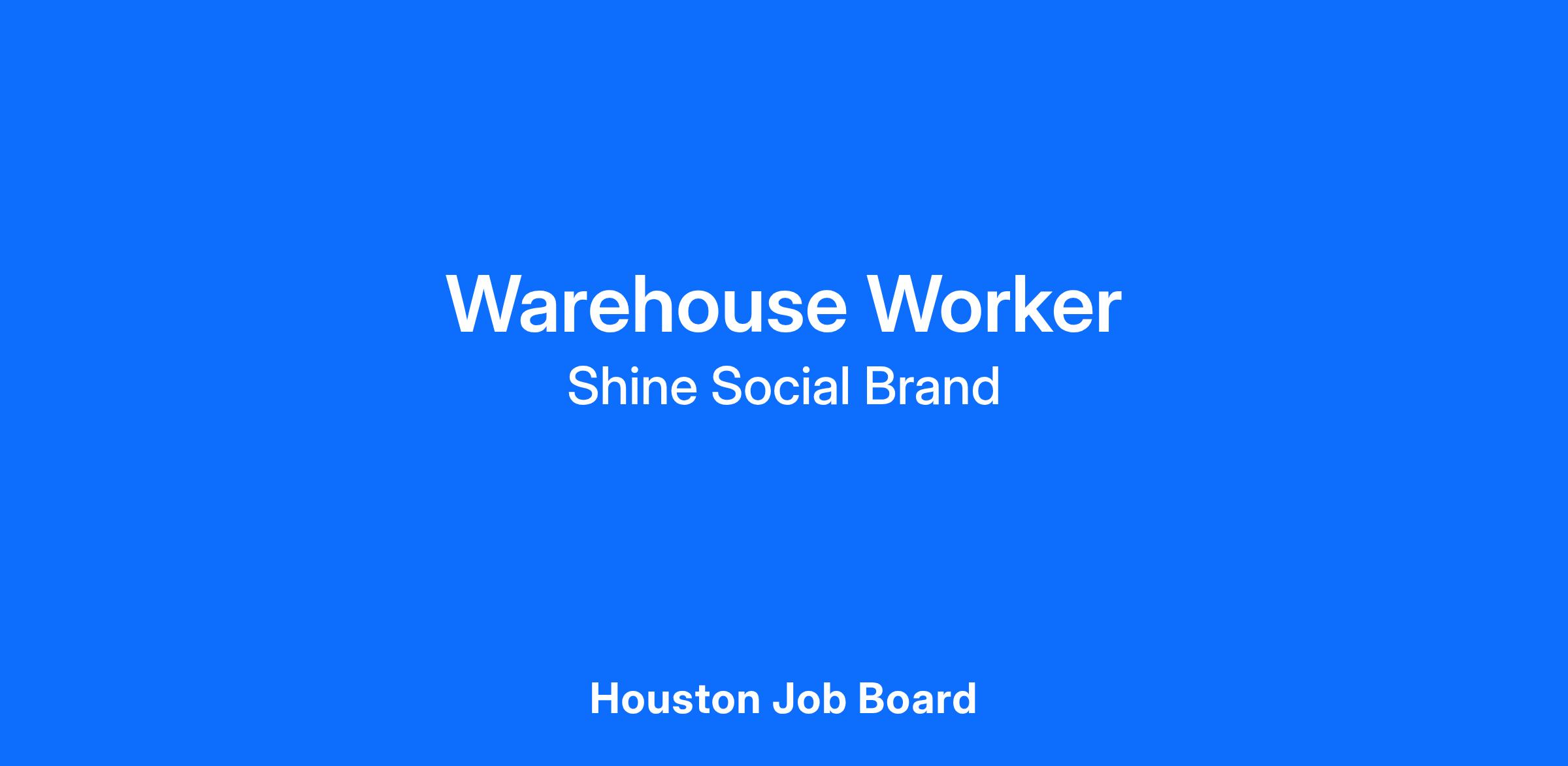 Shine Social Brand is a dynamic company dedicated to delivering high-quality products efficiently and reliably. Our Houston facility is the heart of our operations, where we pride ourselves on fostering a professional, safe, and supportive work environment. We value dedication, attention to detail, and teamwork, and we are committed to providing our employees with growth opportunities and a rewarding career path.