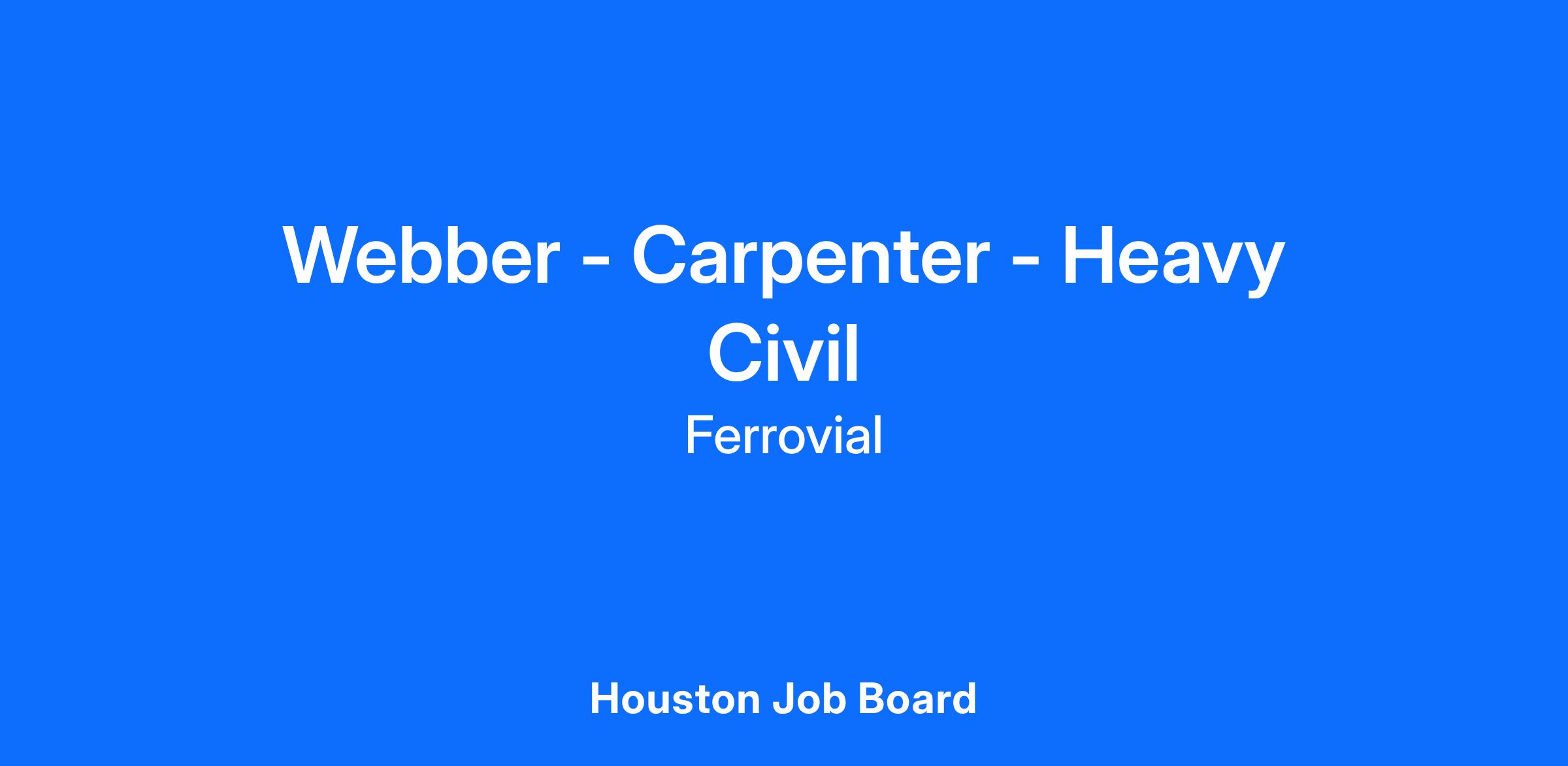 Founded in 1963, Webber, part of Ferrovial Construction, is a leading construction company that specializes in heavy civil, waterworks, energy and infrastructure management and is dedicated to safely providing intelligent solutions to its clients and community. Webber is headquartered in Houston, Texas, with offices and projects in the United States and Canada. Webber supports a wide range of project models to meet client needs, including traditional design bid build, design build, alternative delivery models and public private partnership (P3) solutions. Webber also has an in-house engineering services department to help optimize building efficiency and quality while solving complex project challenges using field experience, innovative construction methods and BIM technology. As a subsidiary of Ferrovial, Webber has access to a global network of skilled engineers, best-in-class technology and vast resources.